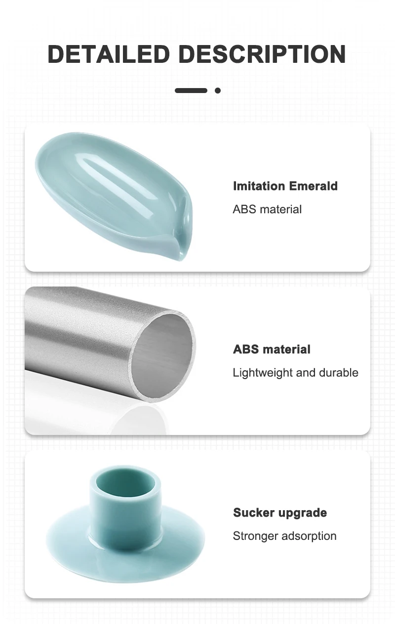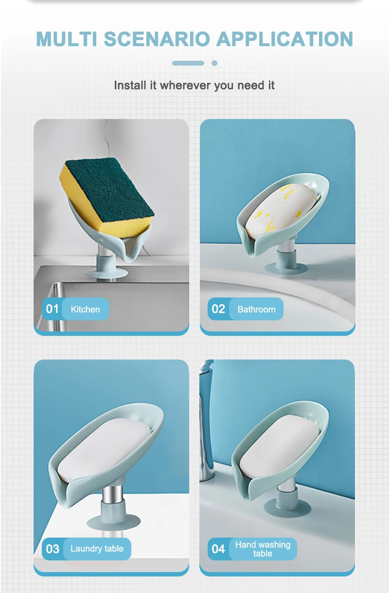 3. Прост в использовании. Кронштейн для мыла легко установить, и в нижней части находится подвижная силиконовая присоска, чтобы сохранить стабильность коробки для мыла. Вам не нужно делать отверстие. Присоска сильнее под действием воды.