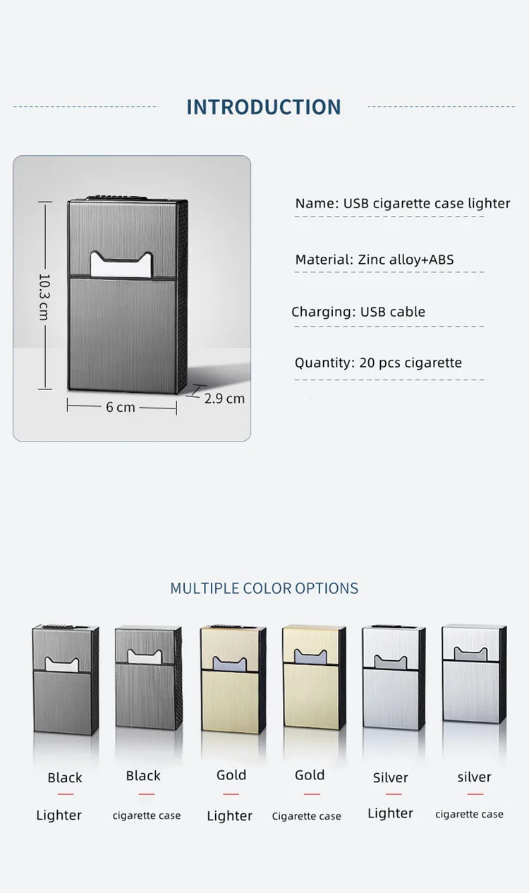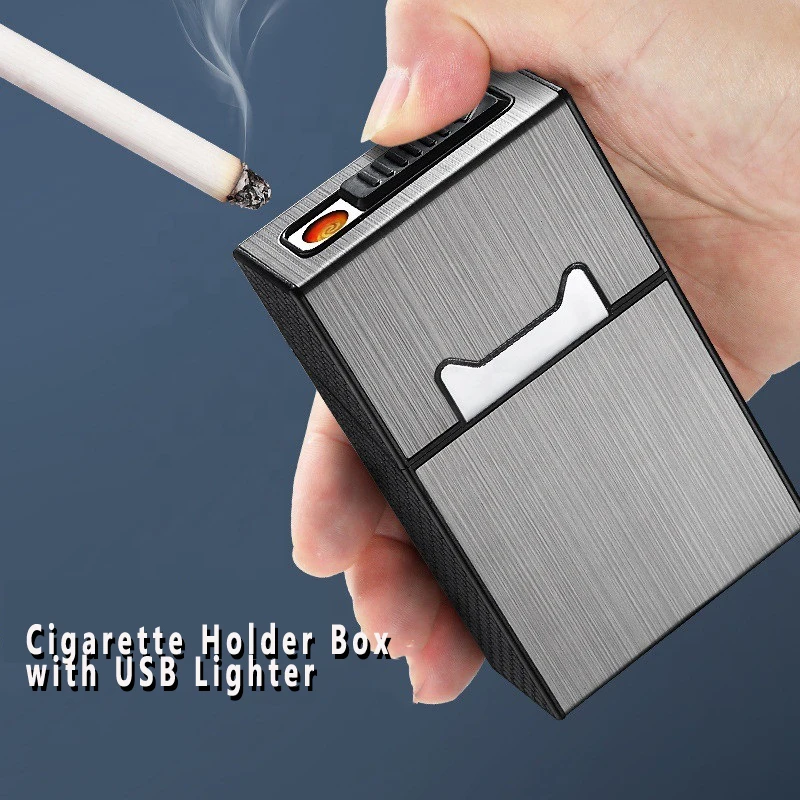 Коробка для сигарет нового дизайна с зажигалкой, грубая коробка для хранения сигарет, вмещающая 20 сигарет, устойчивая USB-зажигалка