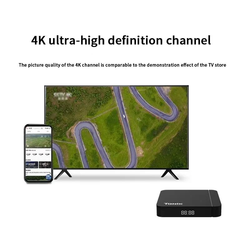 • Четырехъядерный Процессор:Испытайте молниеносную производительность с четырехъядерным процессором RK3318 Tanix W2 Smart TV Box.