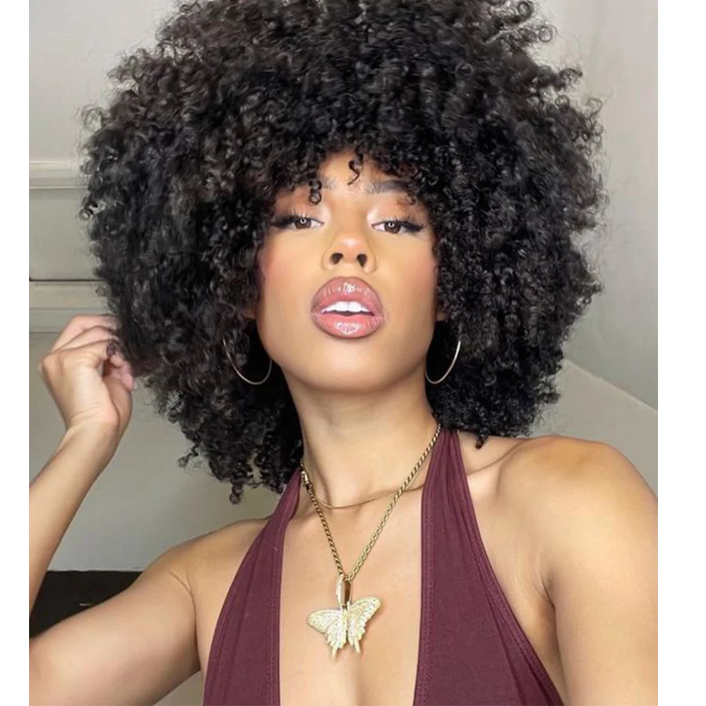 Короткий кудрявый парик с челкой с высоким слоем афро парики натуральные синтетические волосы высокое качество для черных женщин термостойкие
