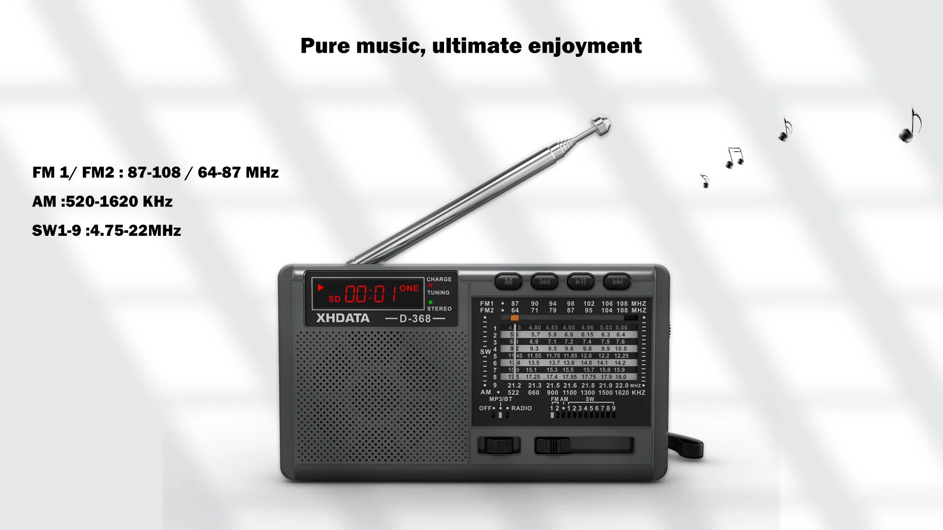 Широкий Частотный охват: D368 может принимать сигналы от глобальных радиостанций, охватывающих Диапазоны частот FM и AM, что позволяет пользователям получать доступ к богатому и разнообразному аудиоконтенту.