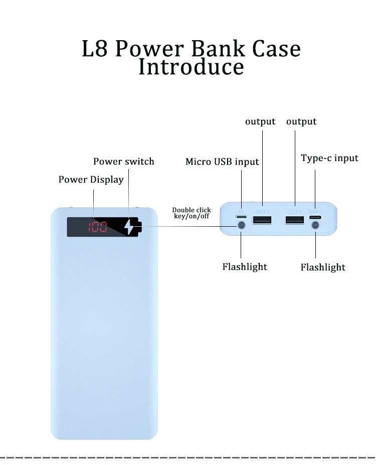 Корпус для самостоятельной сборки, двойное зарядное устройство USB 18650, контейнер для хранения аккумулятора с фонариком, 8*18650, держатель аккумулятора, внешний аккумулятор
