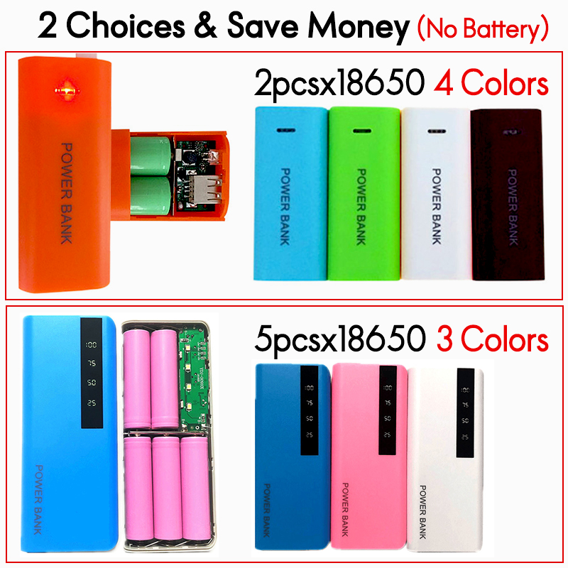 Big capacity 14000mAh 5V 2A 2/5PCS 18650 Power Bank Case DIY battery box Mobile Phone Charger 18650 battery Holder Charging Box