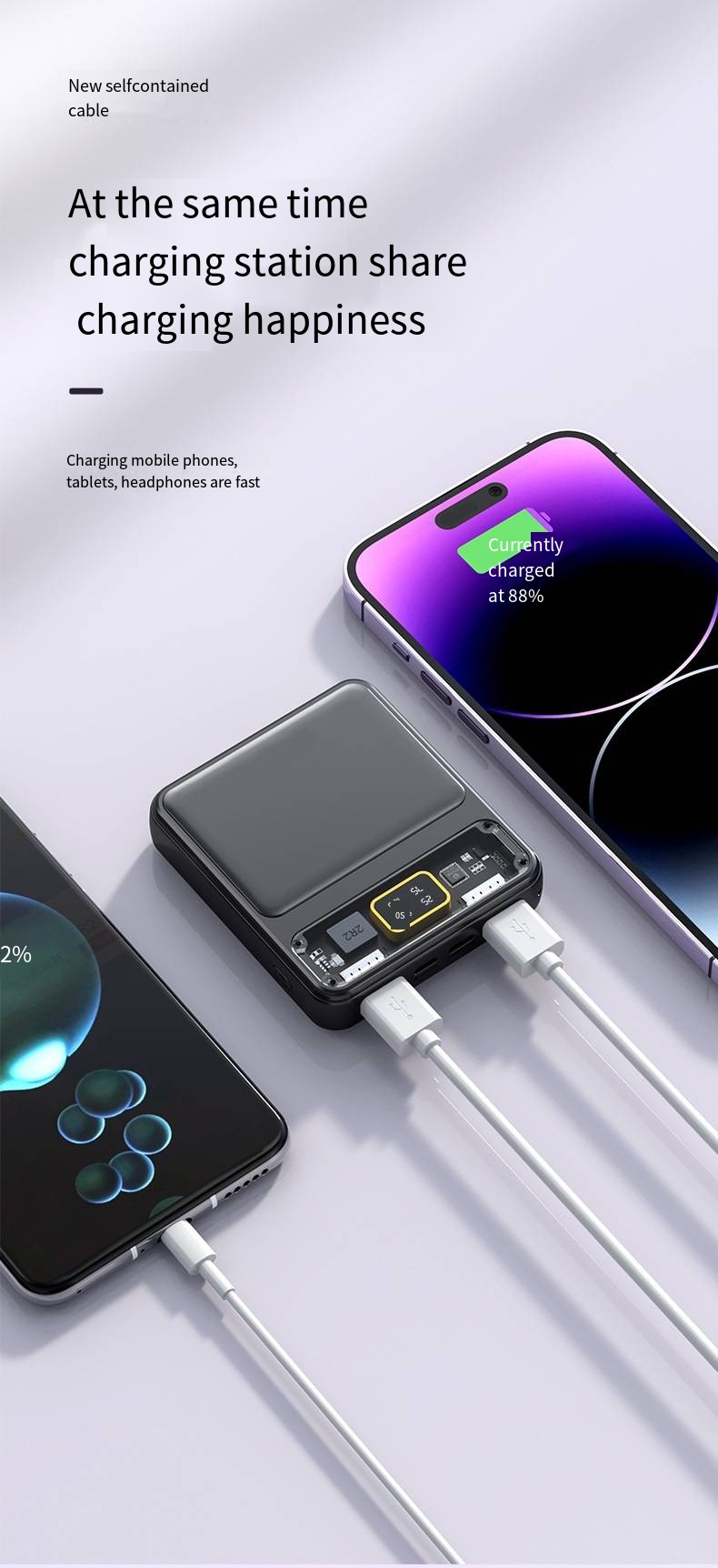 2. [Быстрая зарядка с двумя USB-портами] Он может заряжать два устройства одновременно, а два порта быстрой зарядки Type-C + Micro USB экономят время и силы.