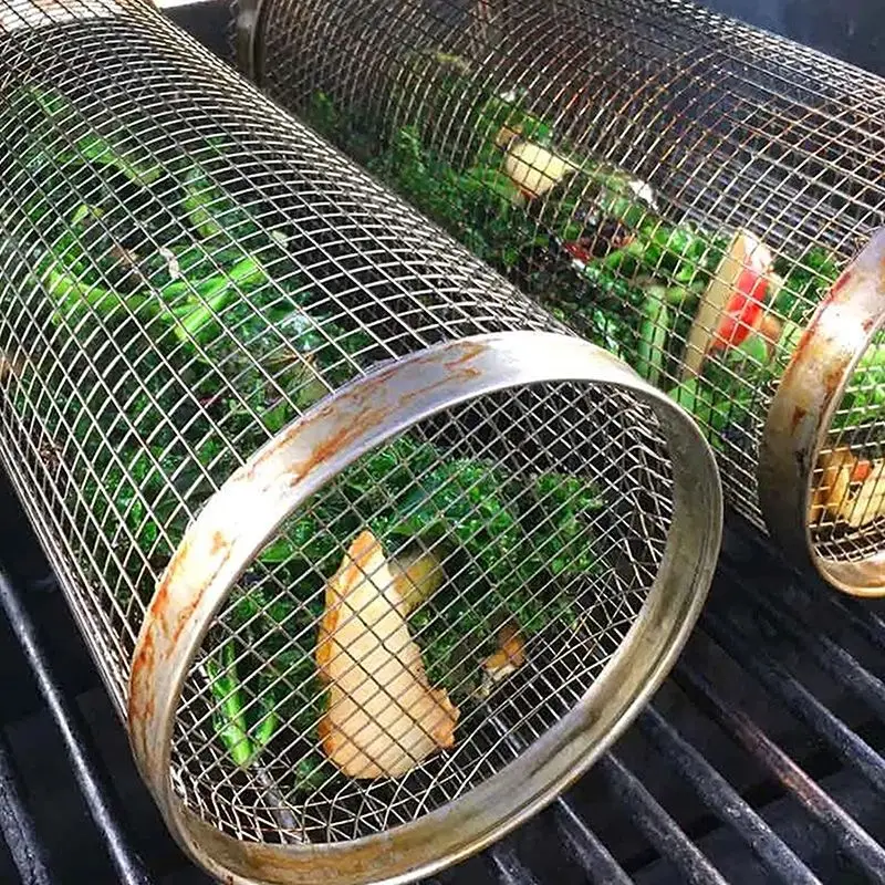 Корзина для гриля Барбекю Катящаяся корзина для гриля Сетка для гриля из нержавеющей стали Полезные аксессуары для барбекю Портативный