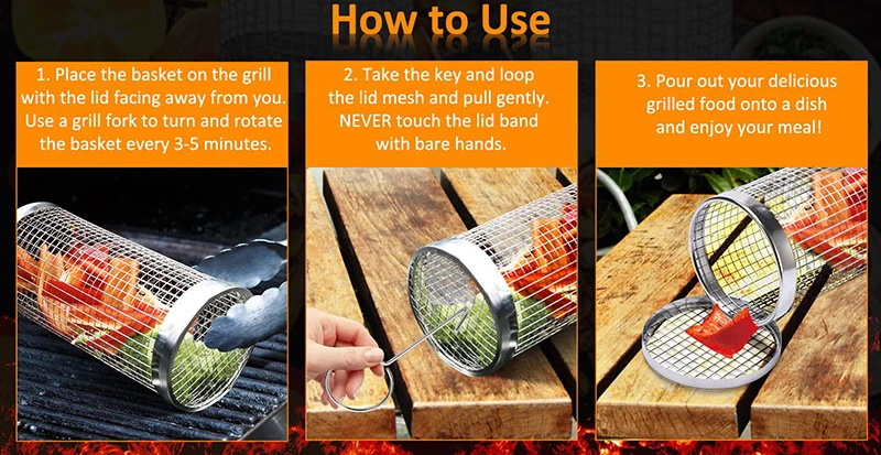 1. Положите корзину на гриль крышкой в сторону от вас. Используйте вилку для гриля, чтобы повернуть и повернуть корзину каждые 3-5 минут.