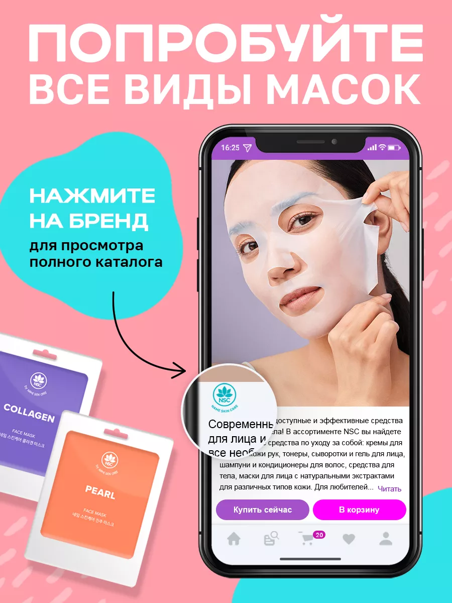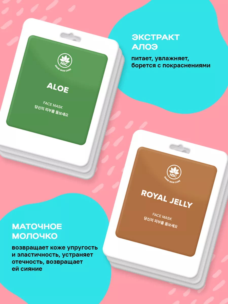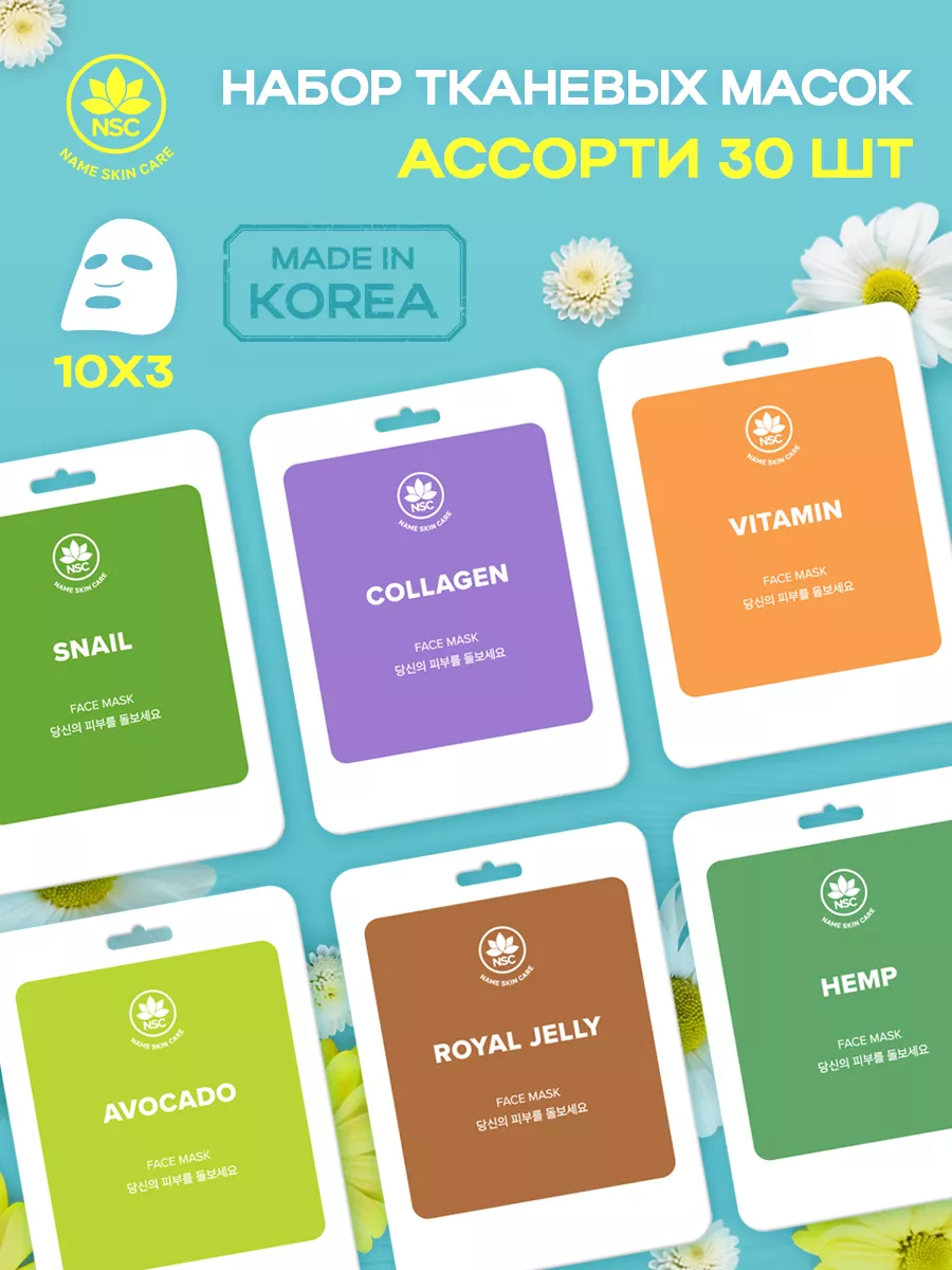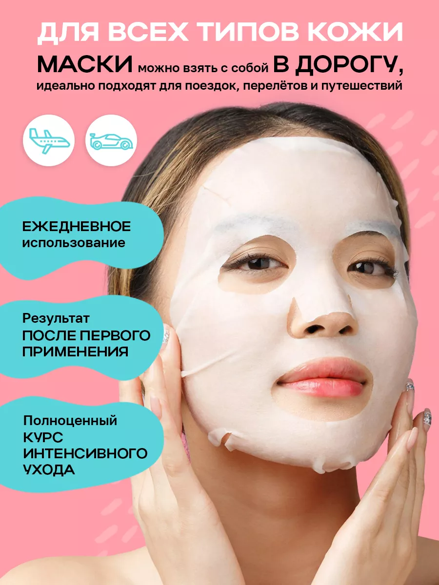 Косметические тканевые маски для лица, набор 30 шт., Корея