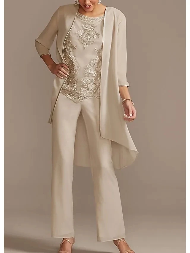 Костюм-брючный/комбинезон для матери невесты, элегантный шифоновый кружевной комбинезон до пола с рукавом 3/4 и аппликацией из бисера