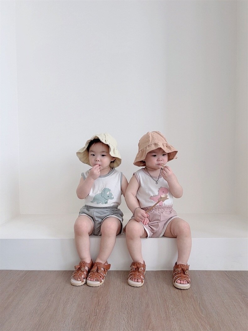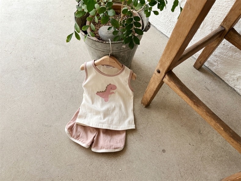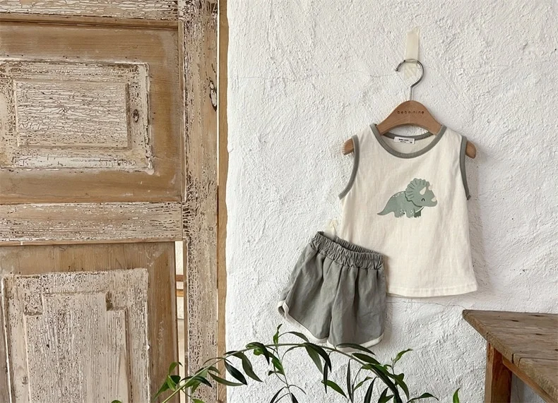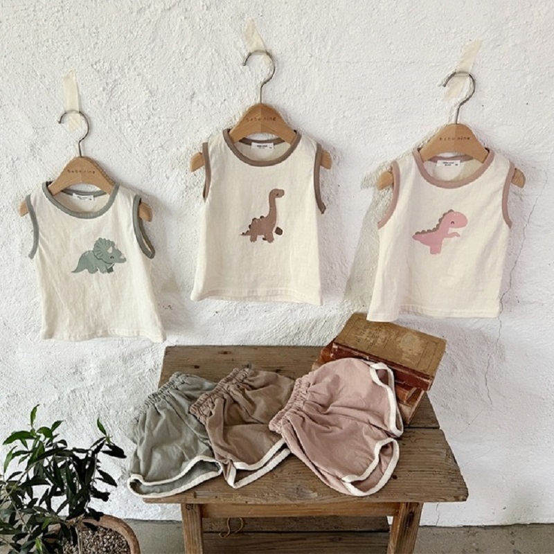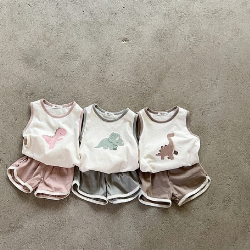Костюм детский из футболки и шортов, жилет без рукавов и шорты с мультяшным динозавром, летняя повседневная одежда, наряды