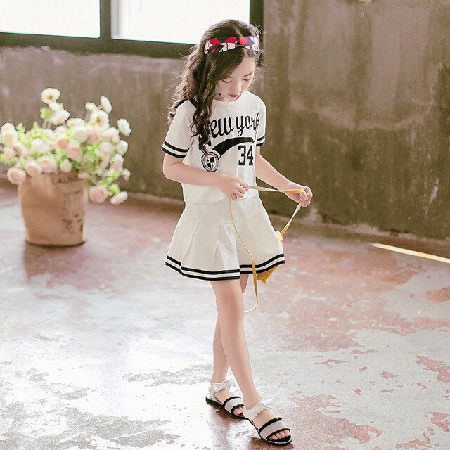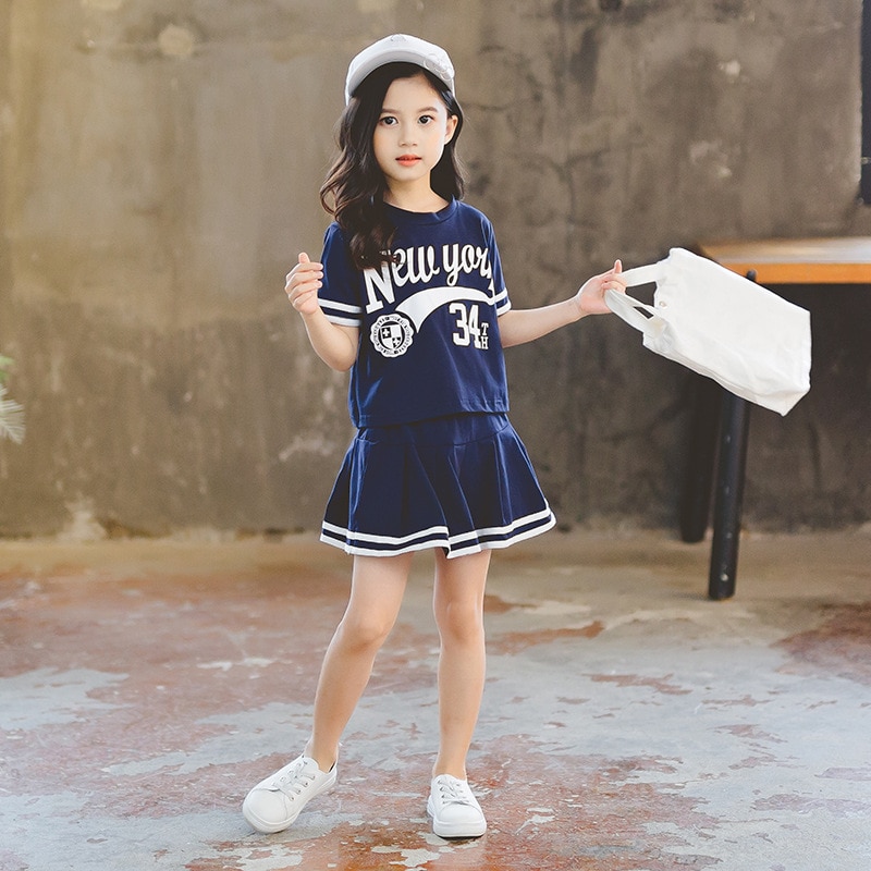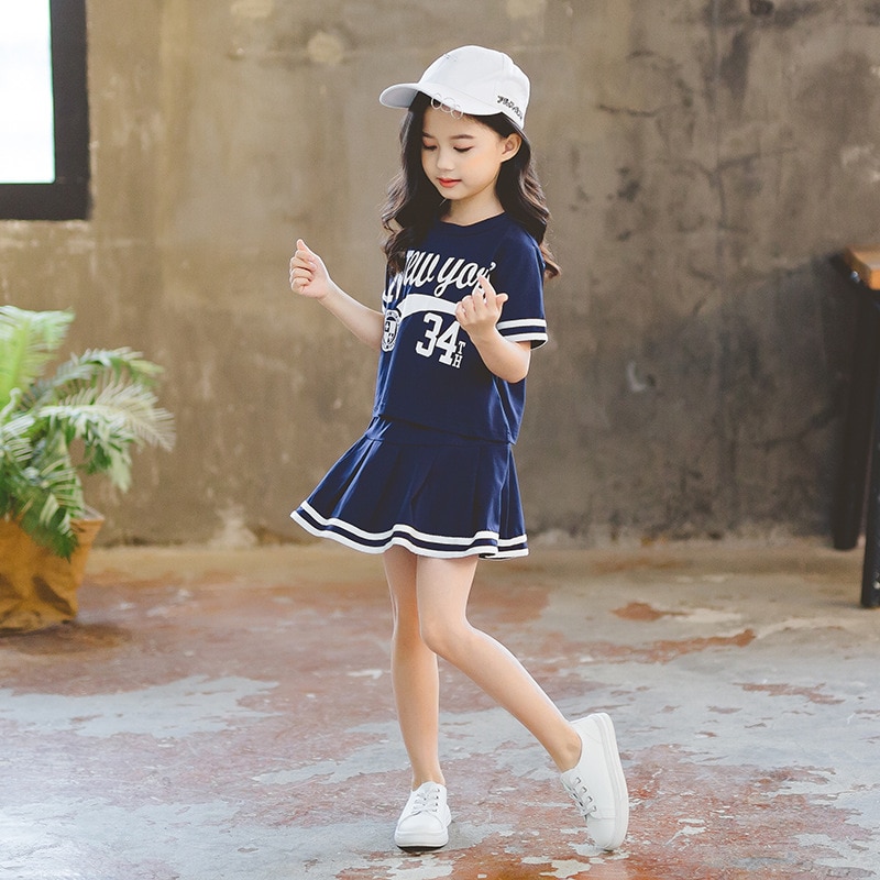 Костюм детский летний из юбки с коротким рукавом и трапециевидной юбки