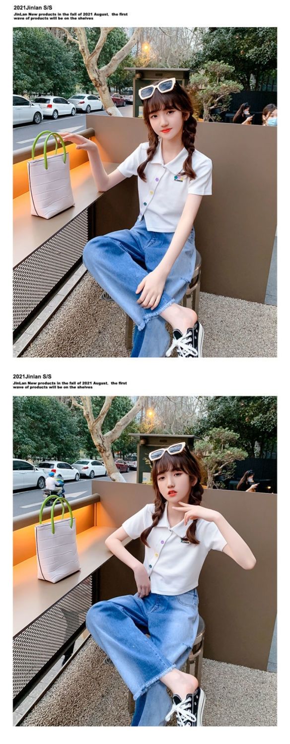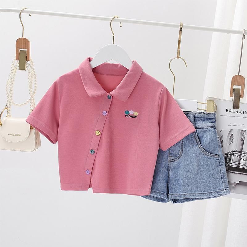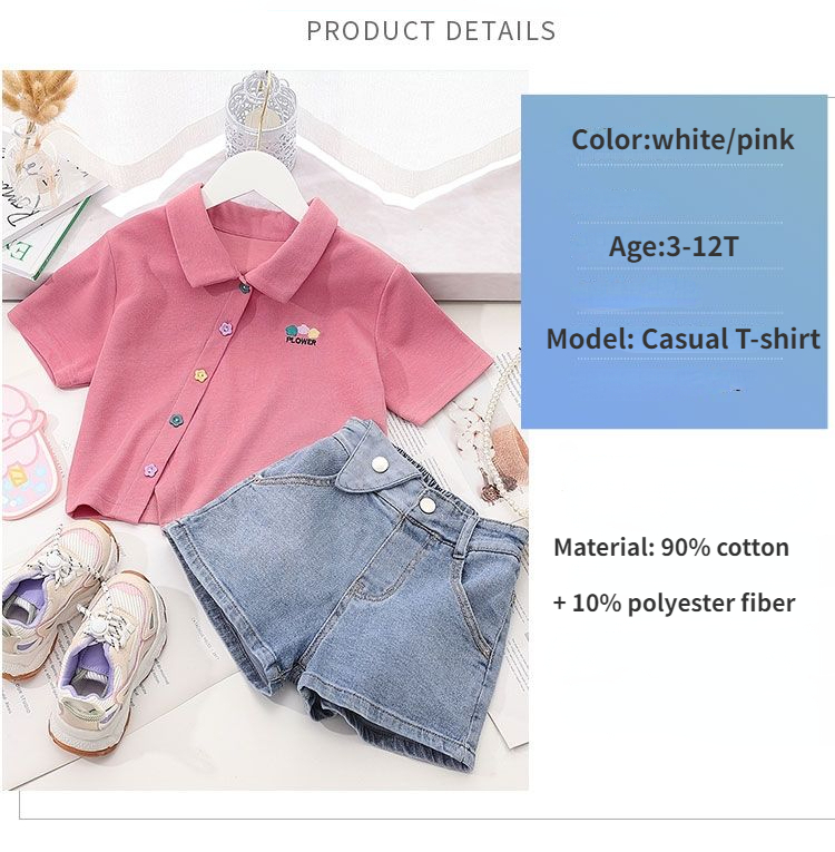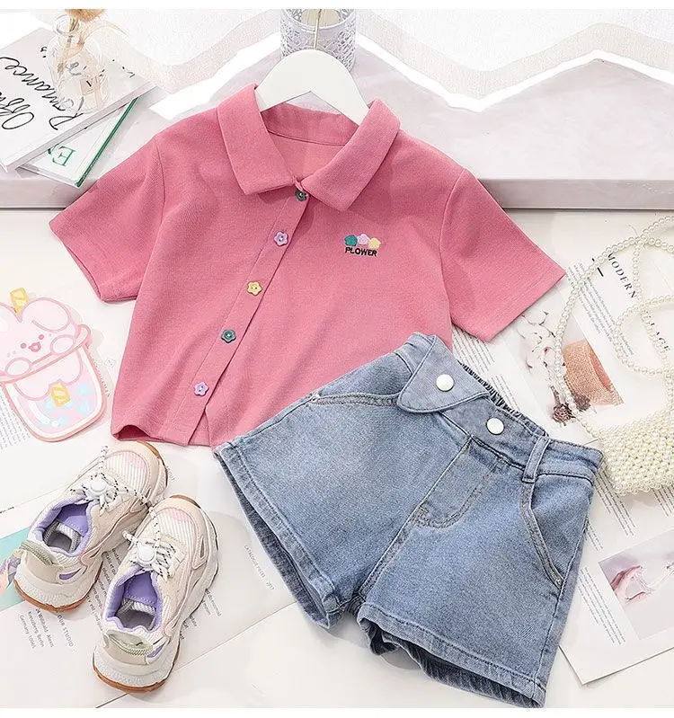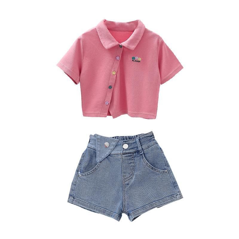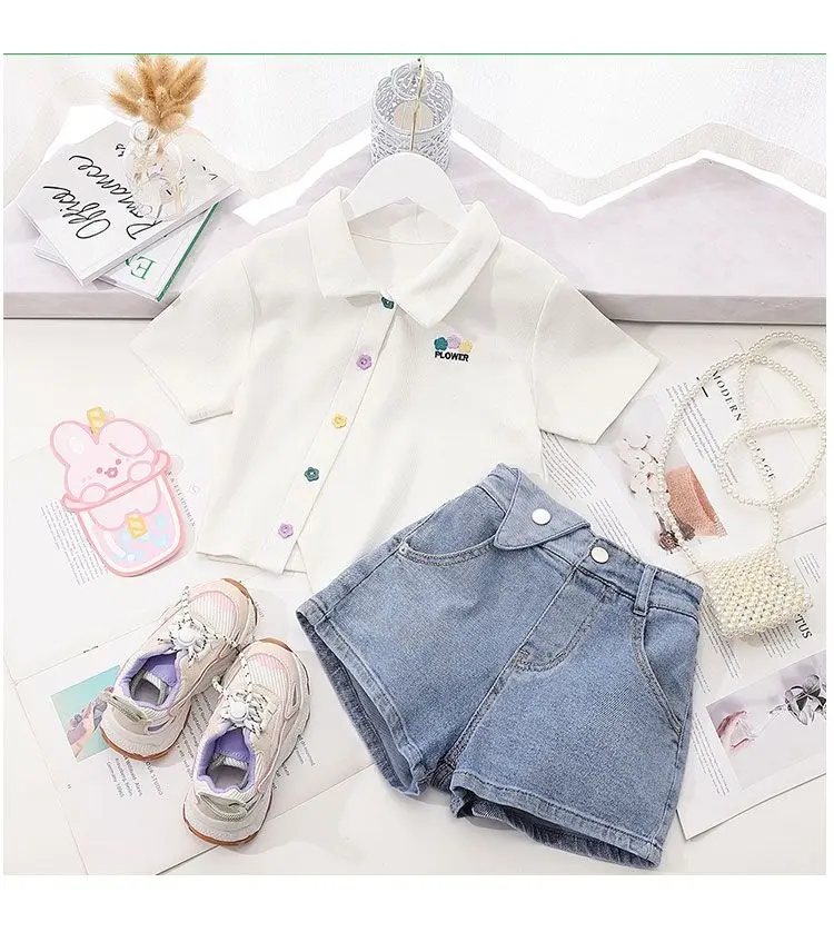 Костюм для девочек, летние детские модные джинсовые шорты + хлопковая футболка, комплект из 2 предметов, Детская удобная одежда