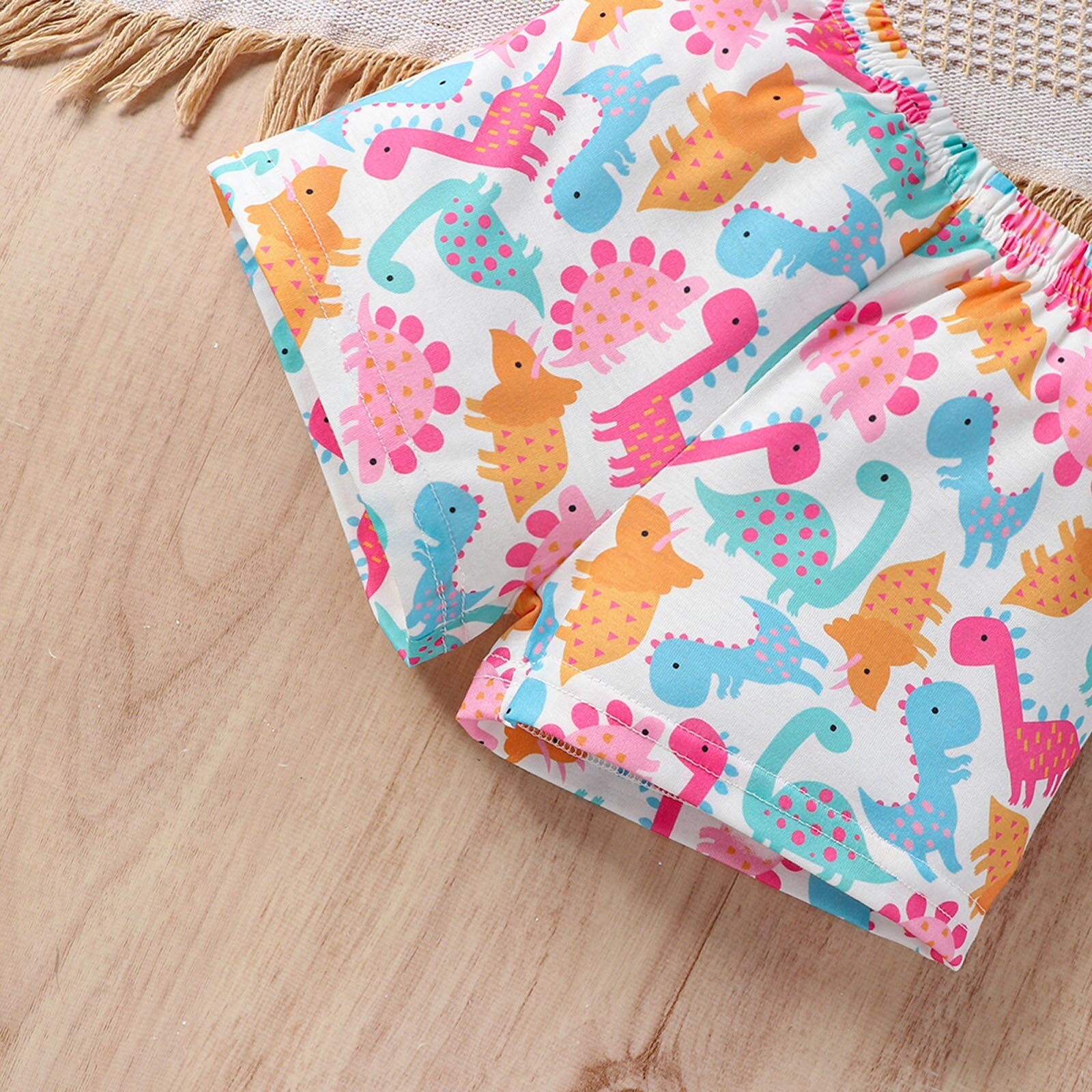 Костюм для маленьких девочек Топ без рукавов Брюки с динозаврами Буквы на подтяжках Многоцветный набор из двух предметов с принтом динозавров для девочек