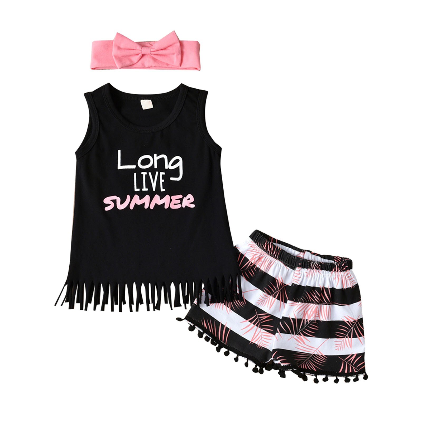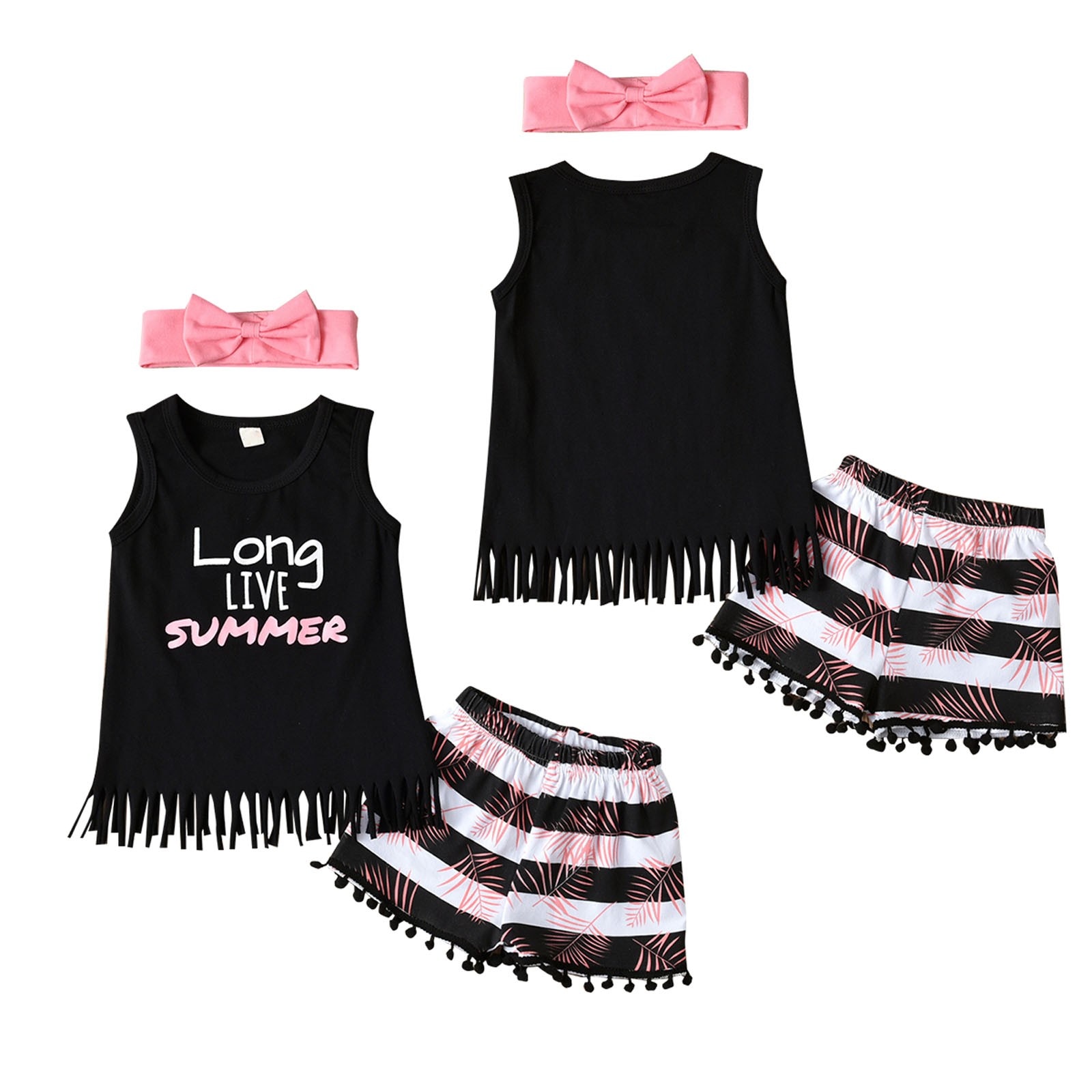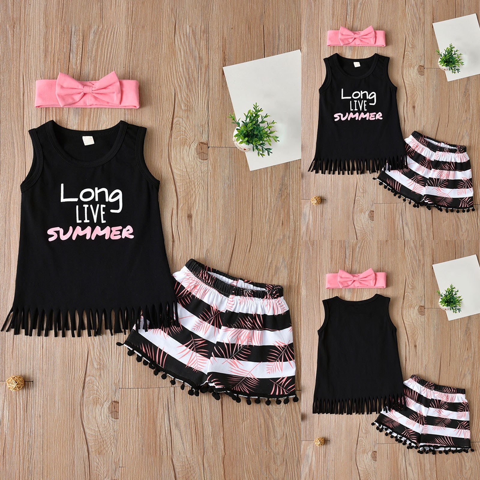 Маленький Ребенок Девочек Костюм Топ Без Рукавов Повседневный Костюм Алфавит Печати Кисточкой Подол Жилет Шорты Летний Костюм