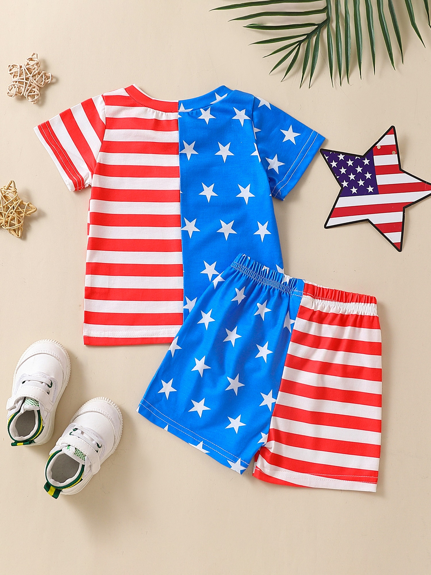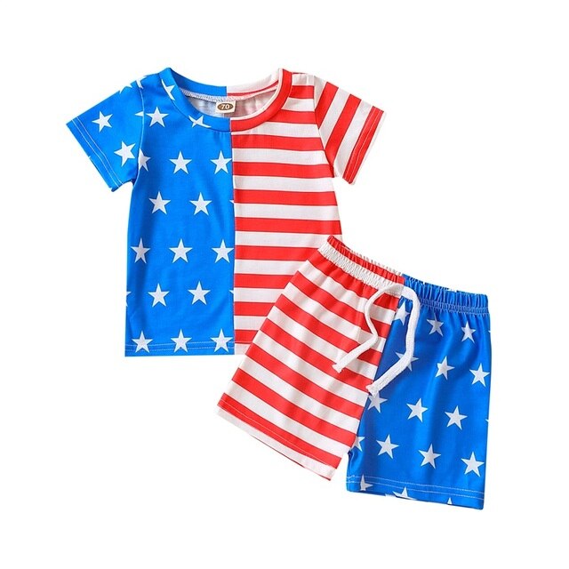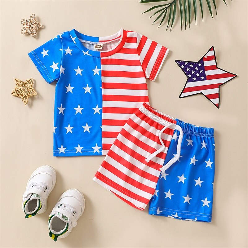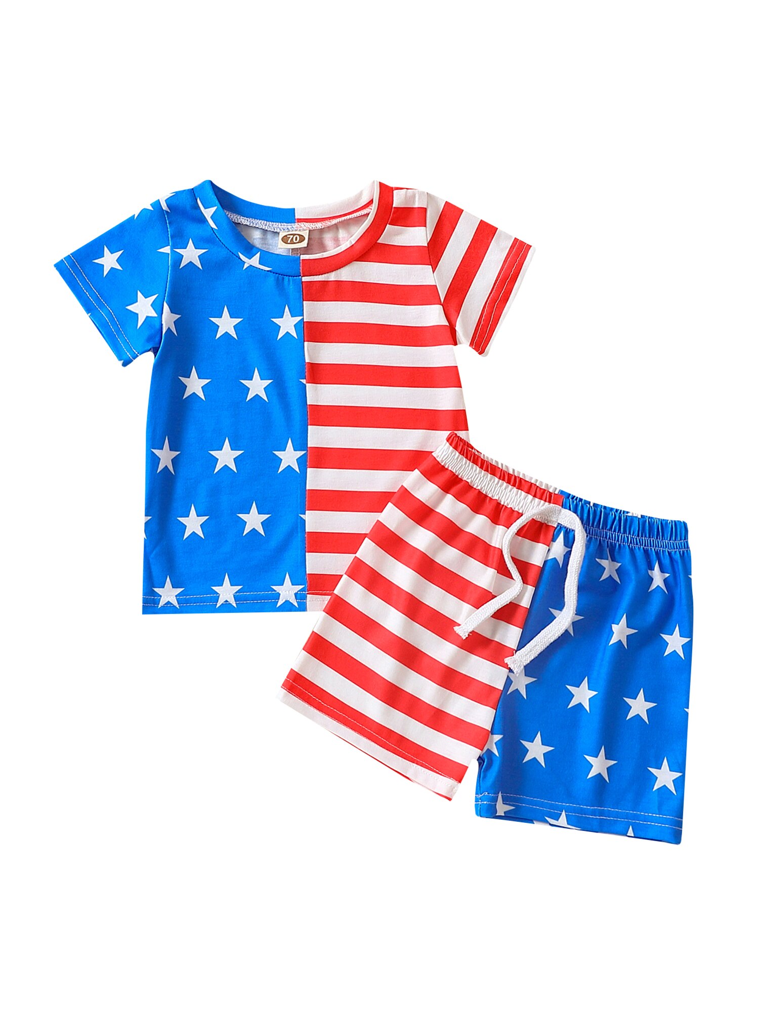 Костюм для маленьких мальчиков 4 июля, футболка с коротким рукавом и круглым вырезом и полосками в виде звезд, топы и шорты, 4 июля