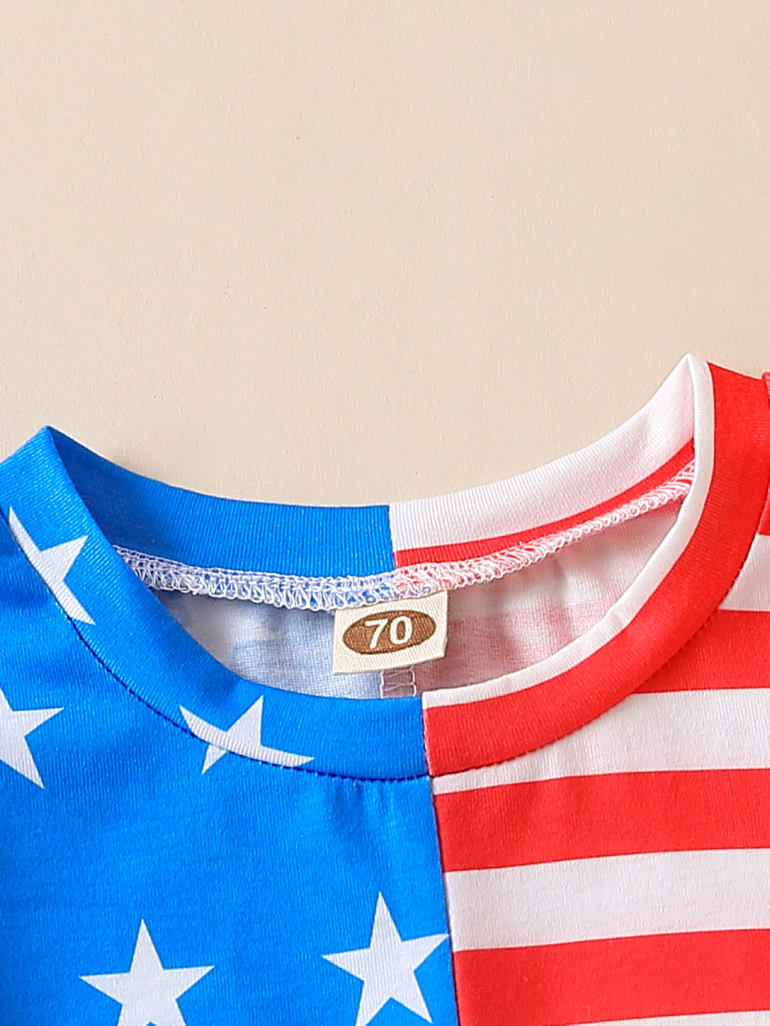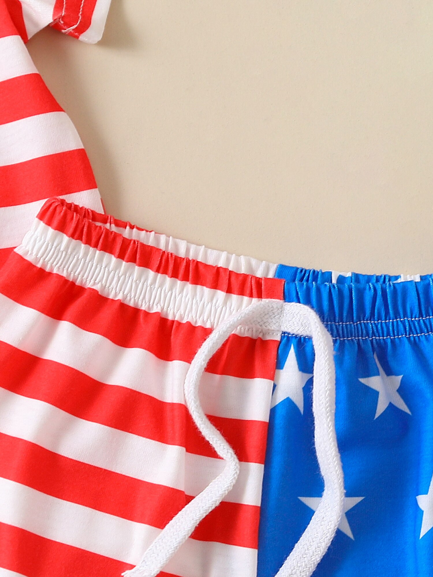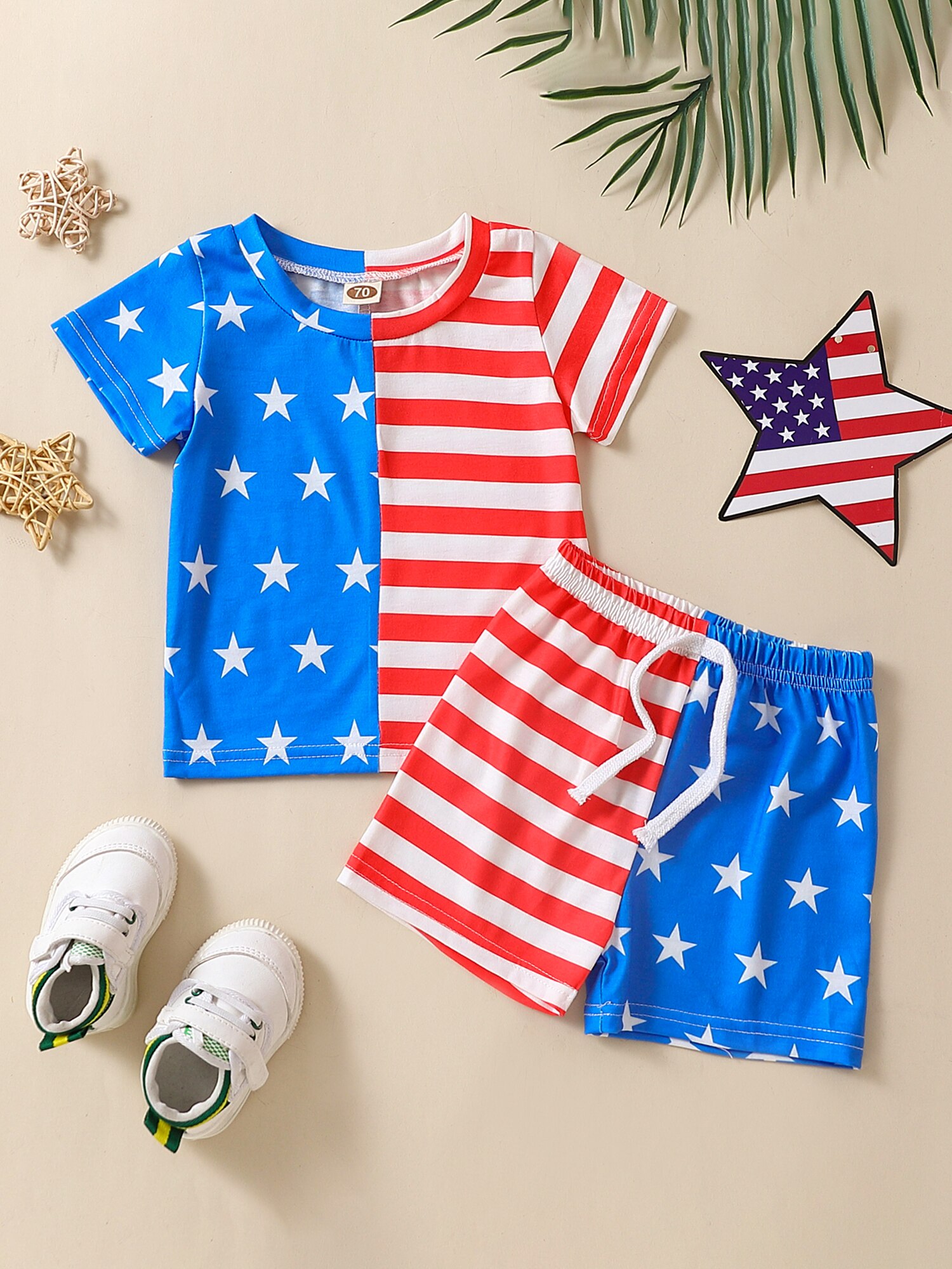 Костюм для маленьких мальчиков 4 июля, футболка с коротким рукавом и круглым вырезом и полосками в виде звезд, топы и шорты, 4 июля