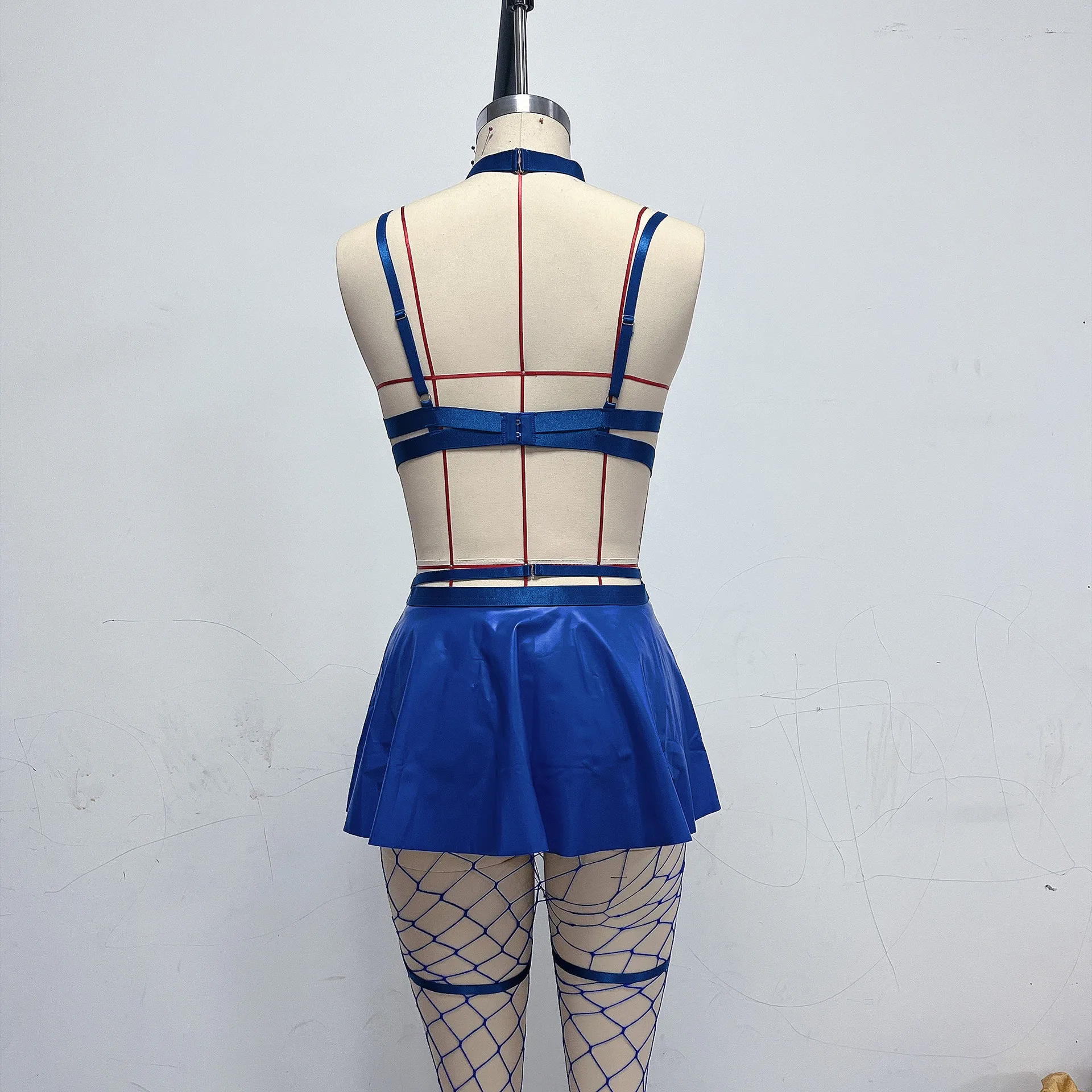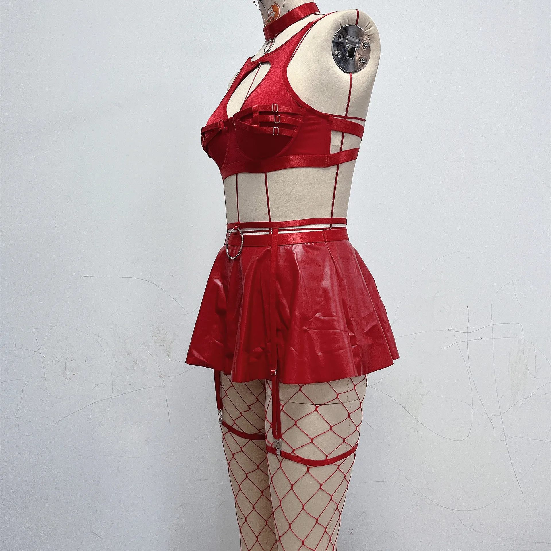 Костюм для танца на шесте Rave, костюм танца ГОГО с кожаным ажурным верхом и юбкой, костюм для ночного клуба, фестиваля, черного цвета