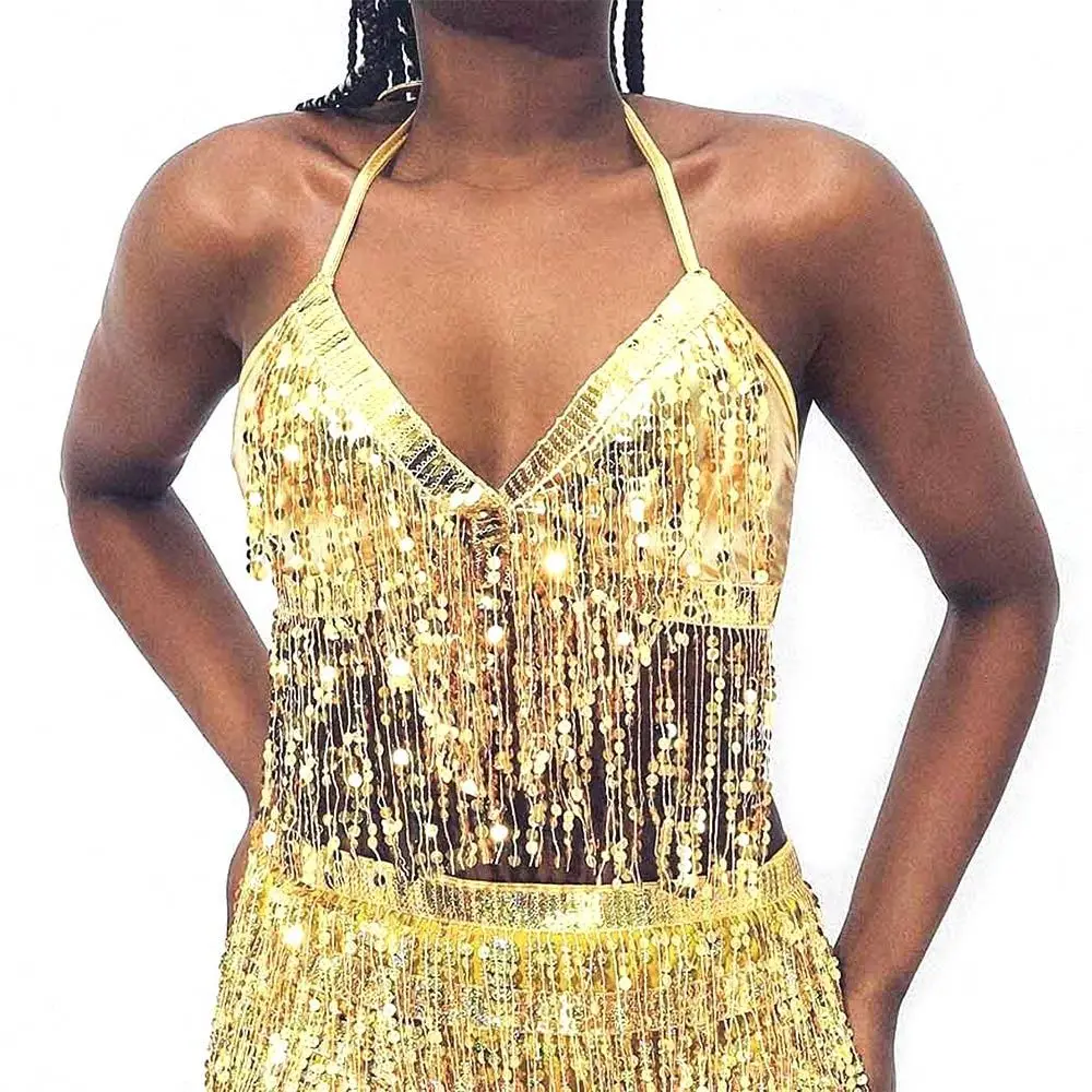 Костюм для танца живота с блестками, бюстгальтер с мягкими чашечками, топ с блестками, одежда для выступлений, клубный женский танцевальный сексуальный короткий топ