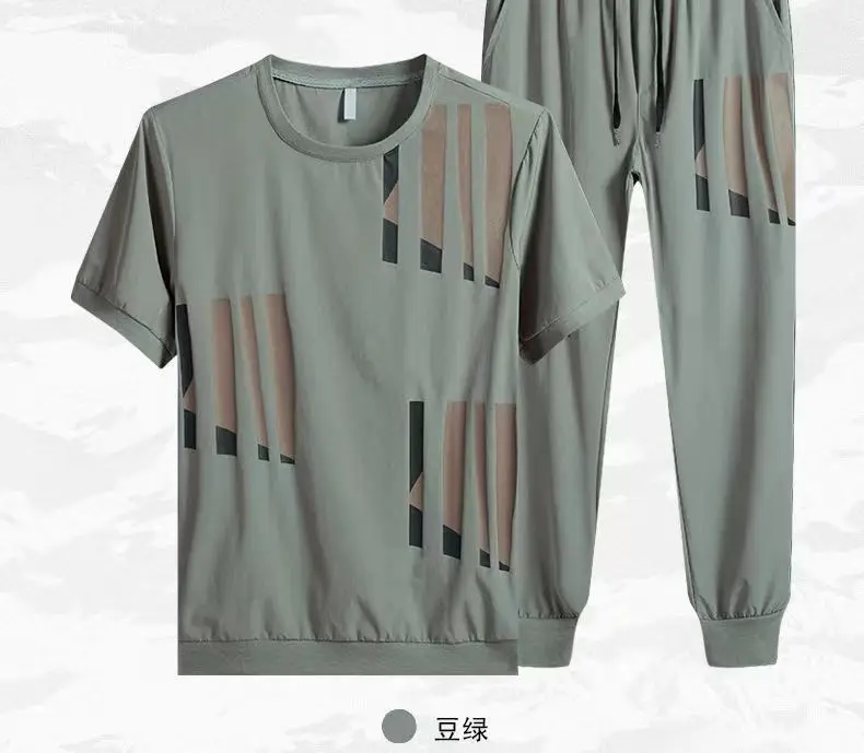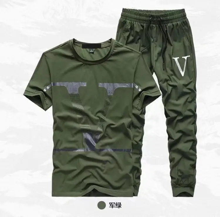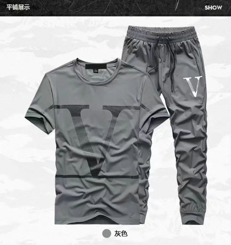 Костюм мужской летний из вискозы, модная брендовая футболка с коротким рукавом, свободные брюки, повседневная спортивная одежда, 2023