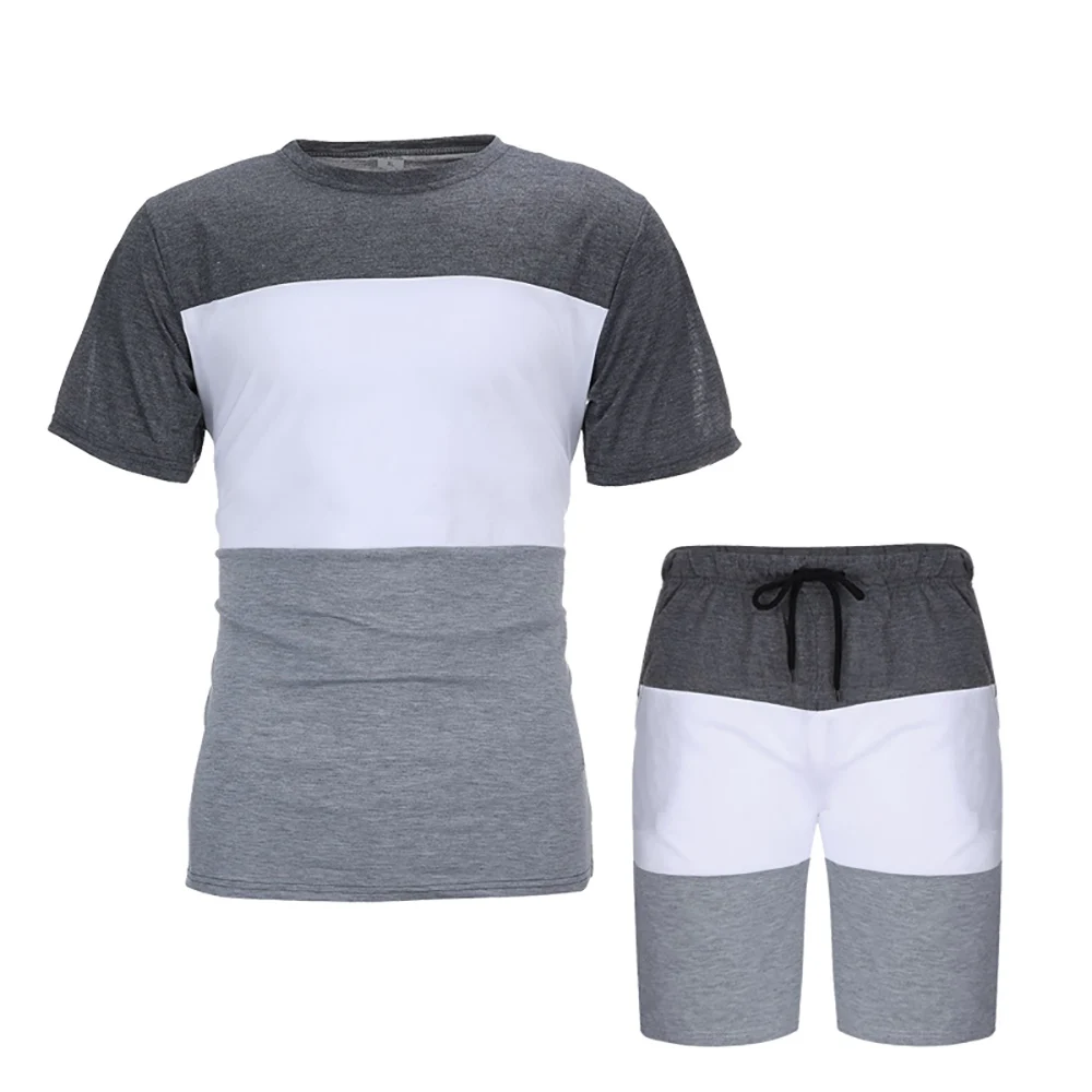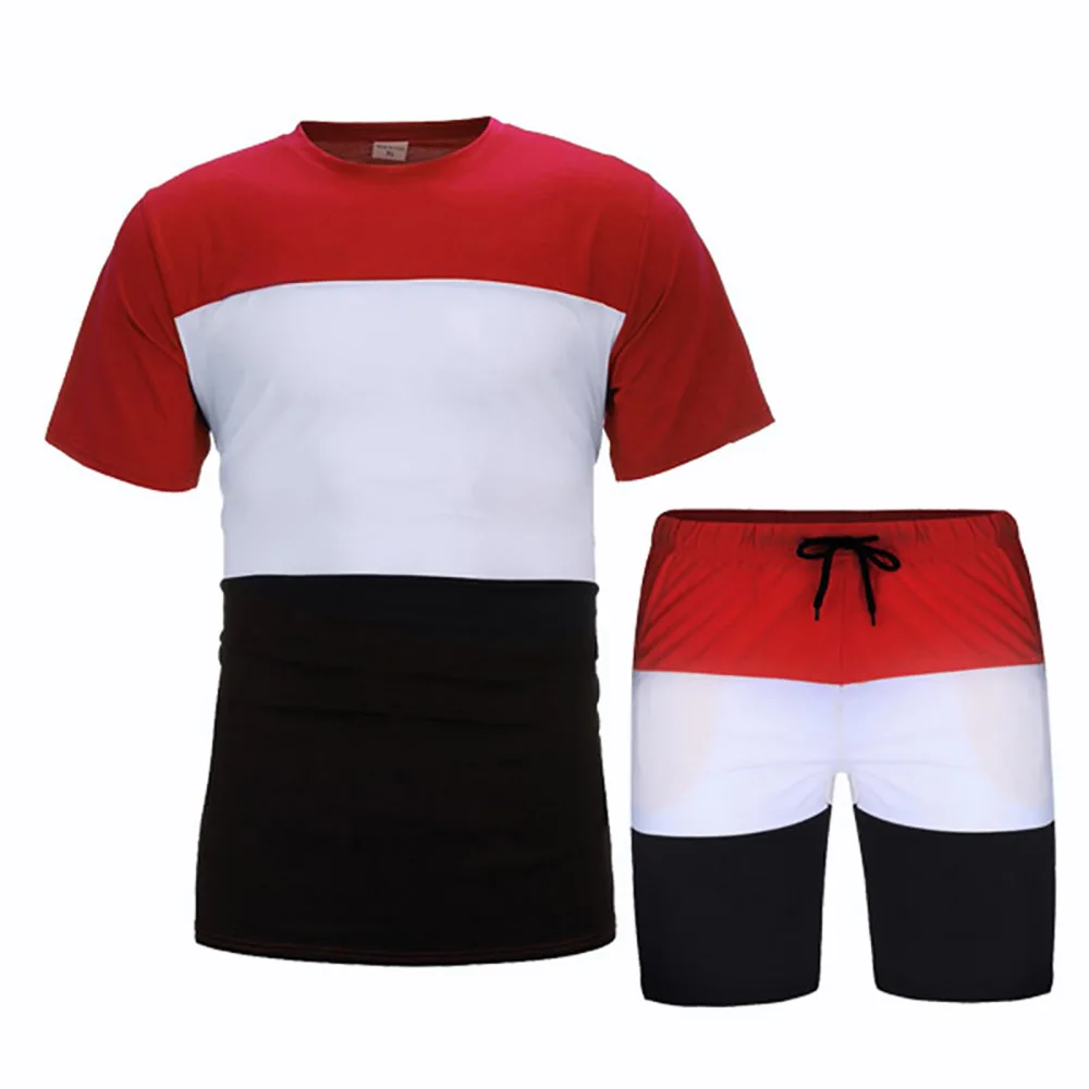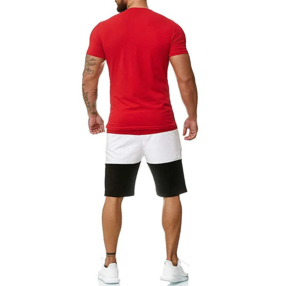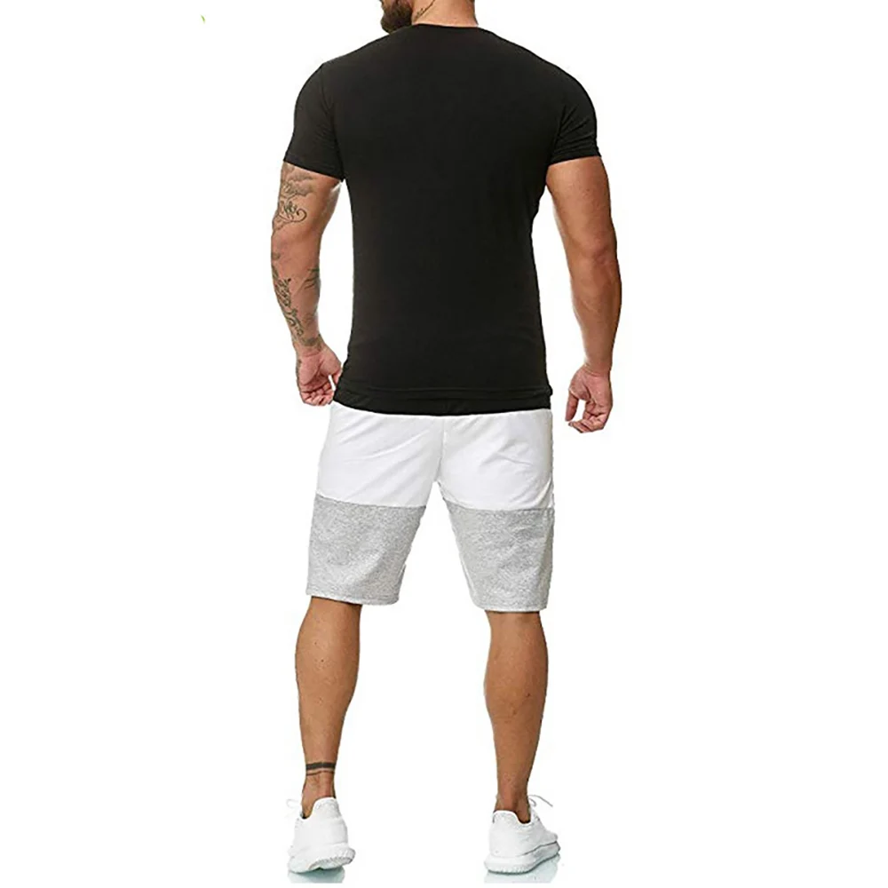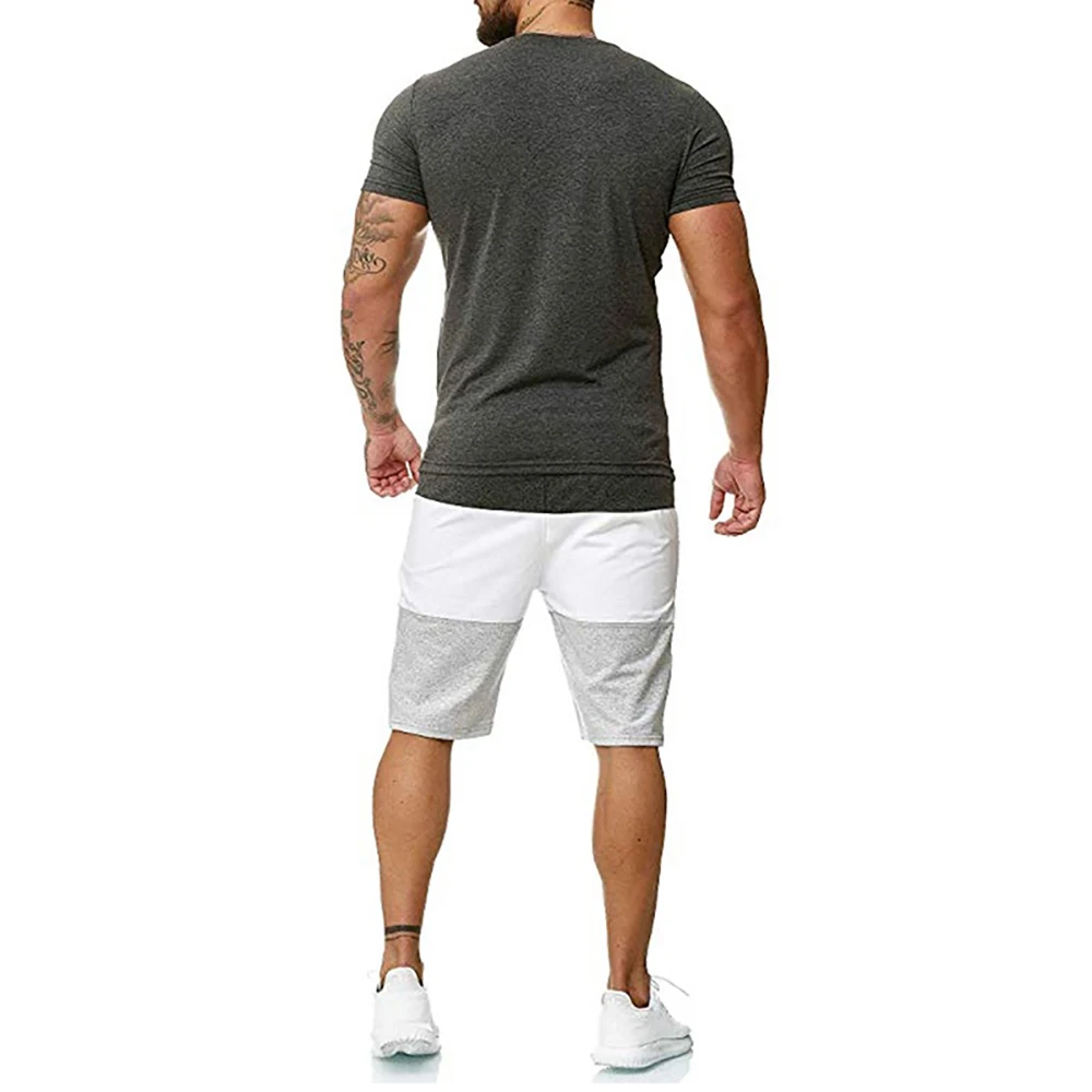 Костюм мужской спортивный контрастного цвета, футболка с коротким рукавом и шорты, повседневный свободный комплект из двух предметов