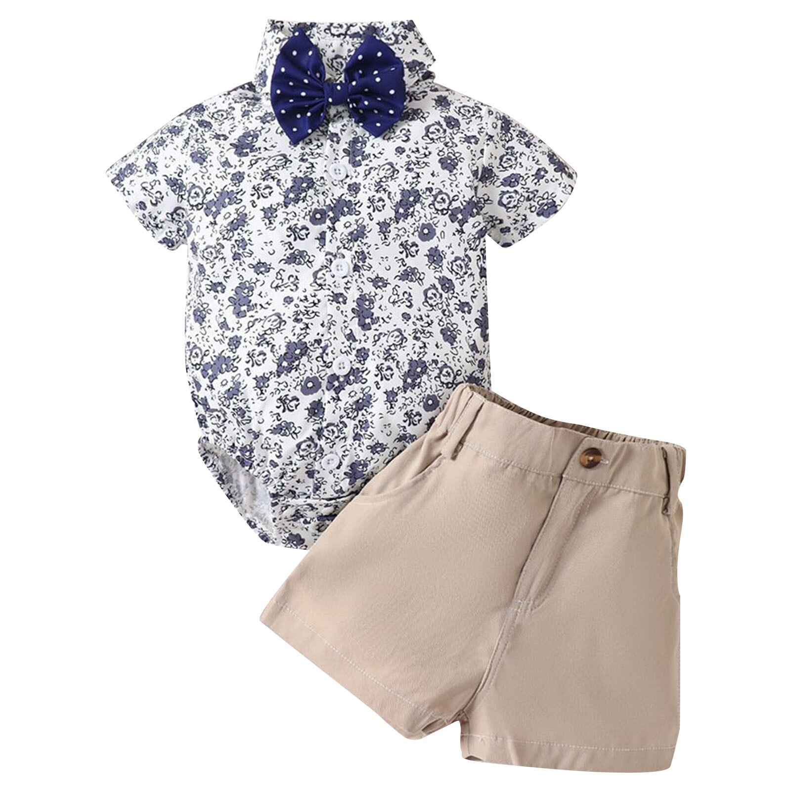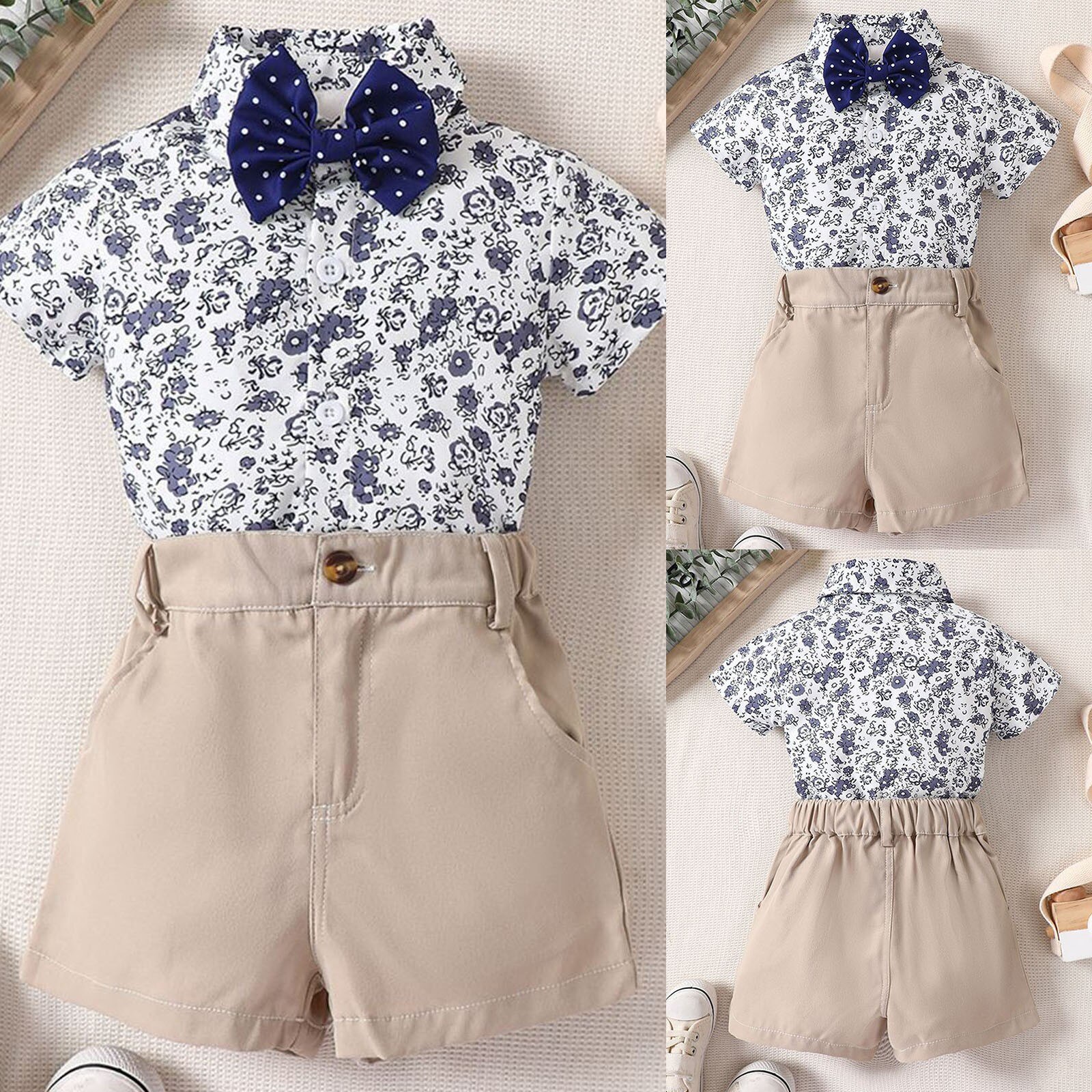 Детский костюм для мальчиков с короткими рукавами и галстуком-бабочкой для джентльменов с принтом шорты цвета хаки с короткими рукавами Летний повседневный костюм