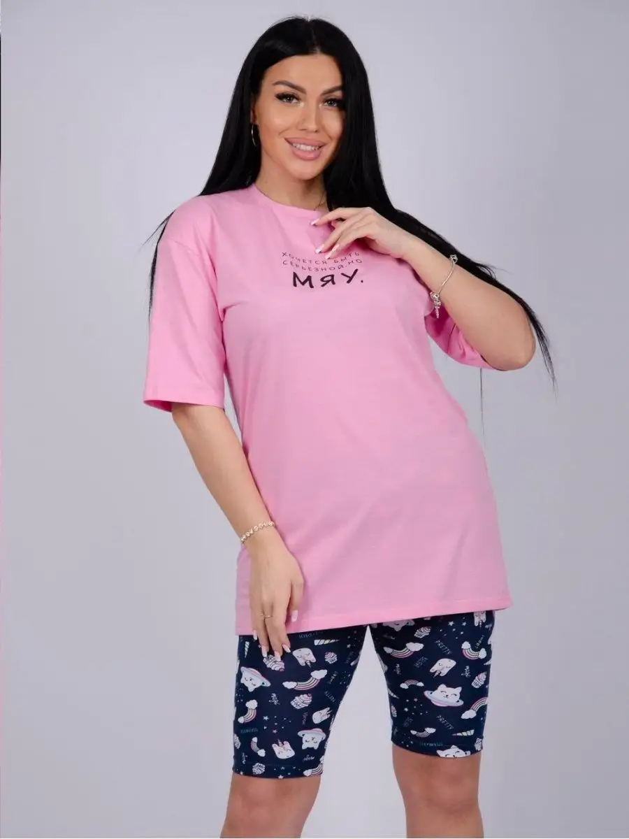 Комплектация Футболка оверсайз - 1 шт.; Велосипедки женские - 1 шт.
