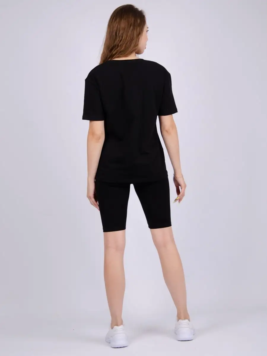 Описание: Молодежный летний трикотажный костюм с велосипедками. Костюм спортивный женский , с футболкой " Оверсайз". Костюм с шортами и футболкой для прогулок и занятия спортом. Футболка из 100% хлопка, велосипедки 95% хлопок (качества пенье), 5% лайкры.