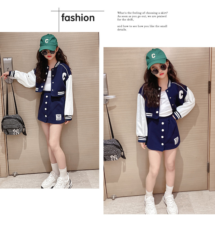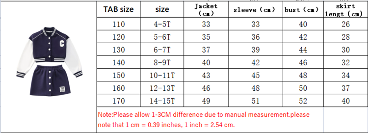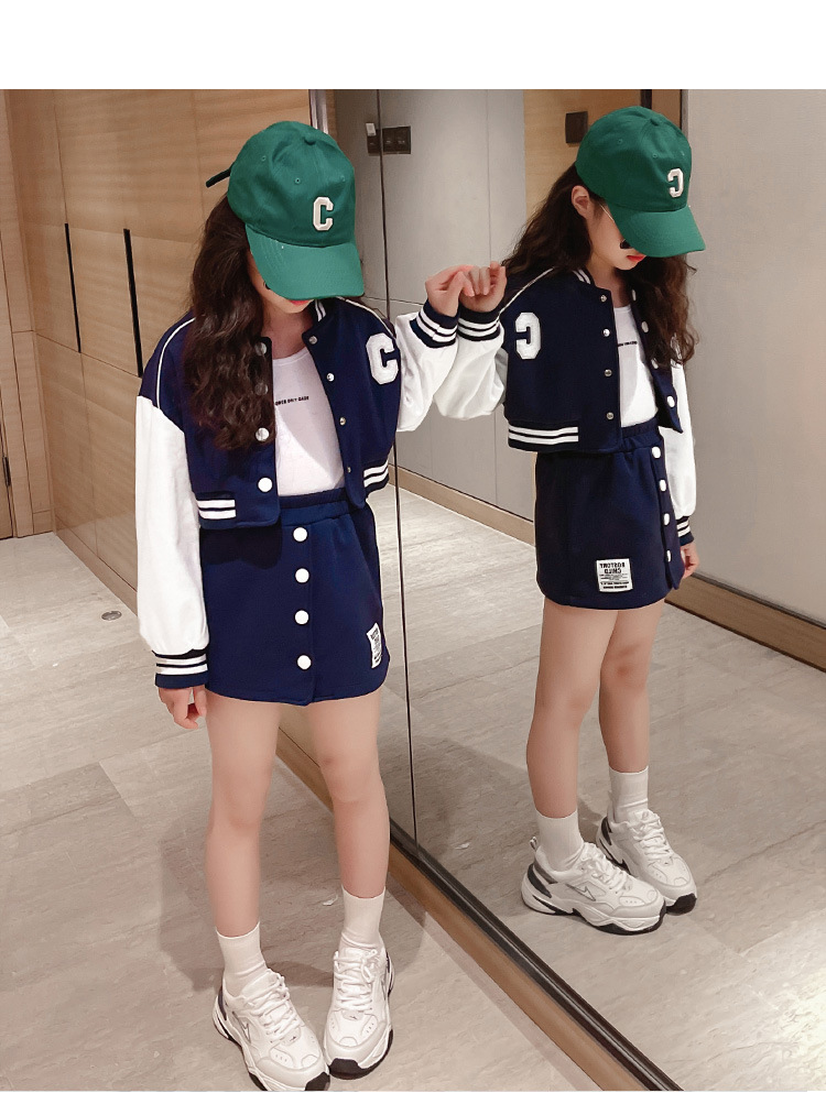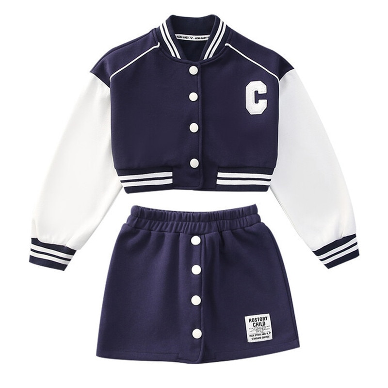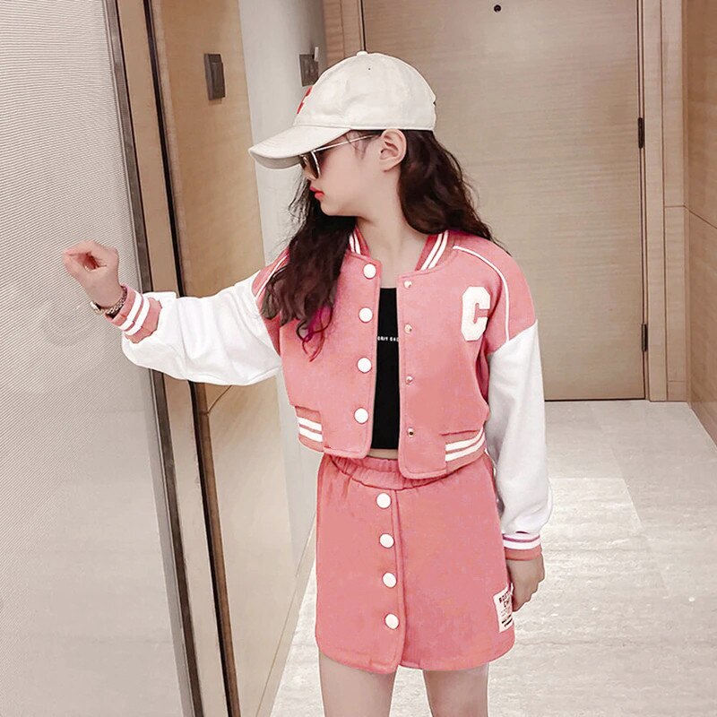 Костюмы с юбкой для девочек, весенняя одежда для отдыха, Детские комплекты одежды Jk в Корейском стиле, бейсбольная форма для девочек, куртка и короткая юбка, комплект из 2 предметов