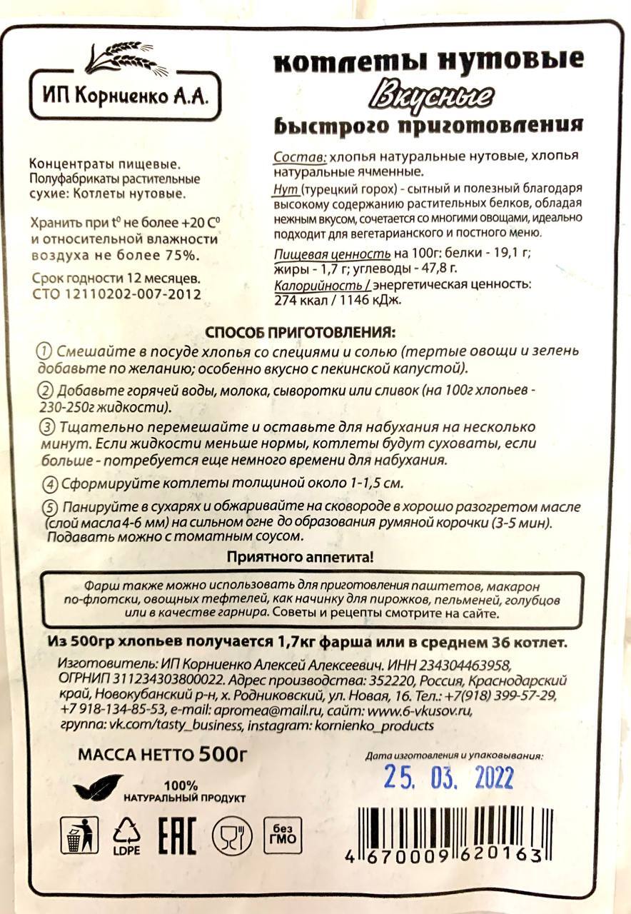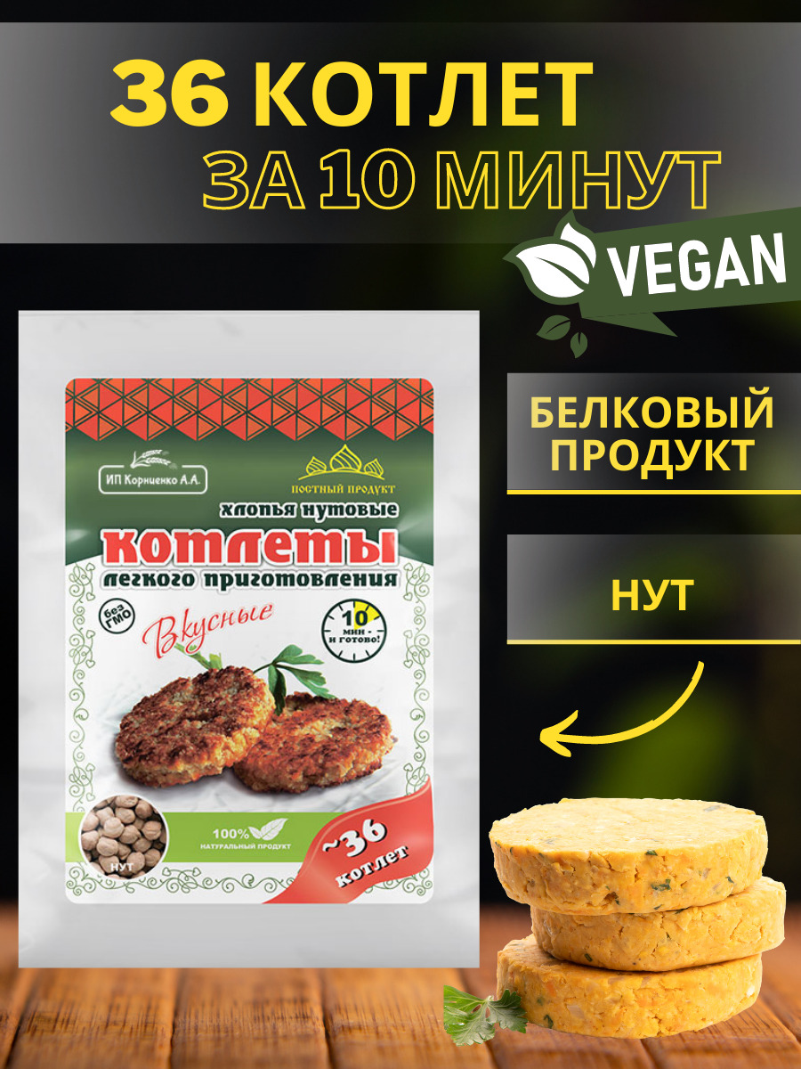 Котлеты нутовые постные, веганские 500г. Россия, Хлопья нутовые быстрого приготовления