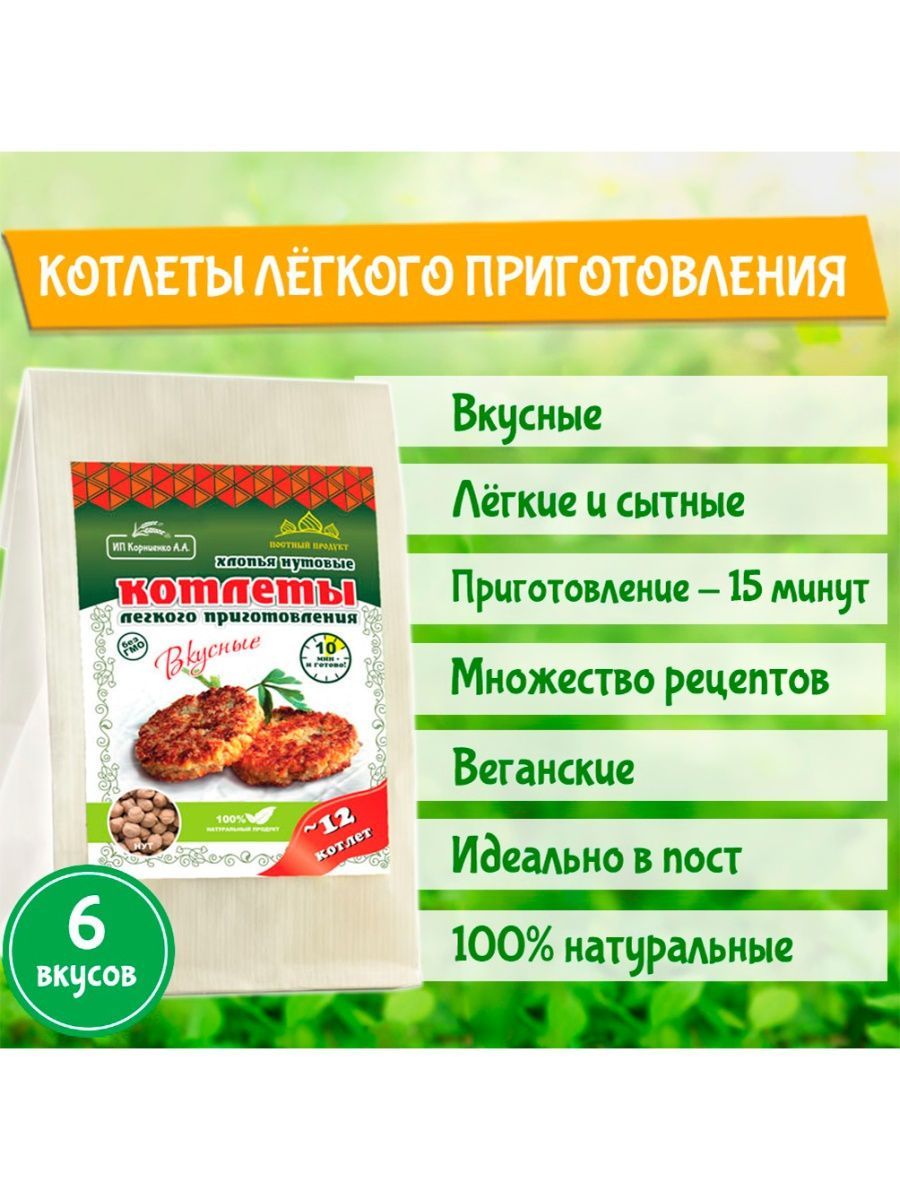Описание: Котлеты лёгкого приготовления от Корниенко - это поистине уникальный здоровый продукт. Сохранив всю пользу цельного зерна, мы сделали хлопья для котлет, которые легко приготовить в 3 этапа всего за 15 минут. Идеально подходит для постного и веганского меню. Комплект этой упаковки: хлопья для фарша, панировочные сухари для хрустящей корочки и натуральные свежемолотые специи. Натуральный продукт. Без ГМО! Из наших хлопьев можно с легкостью приготовить множество других вкусных блюд: тефтели, ёжики, запеканки, гратен, лазанья, пирожки, чебуреки, пельмени, фаршированные овощи и блины, пироги, пицца, паста, овощи и супы с фрикадельками, паштеты, и это всё — не полный список блюд.
