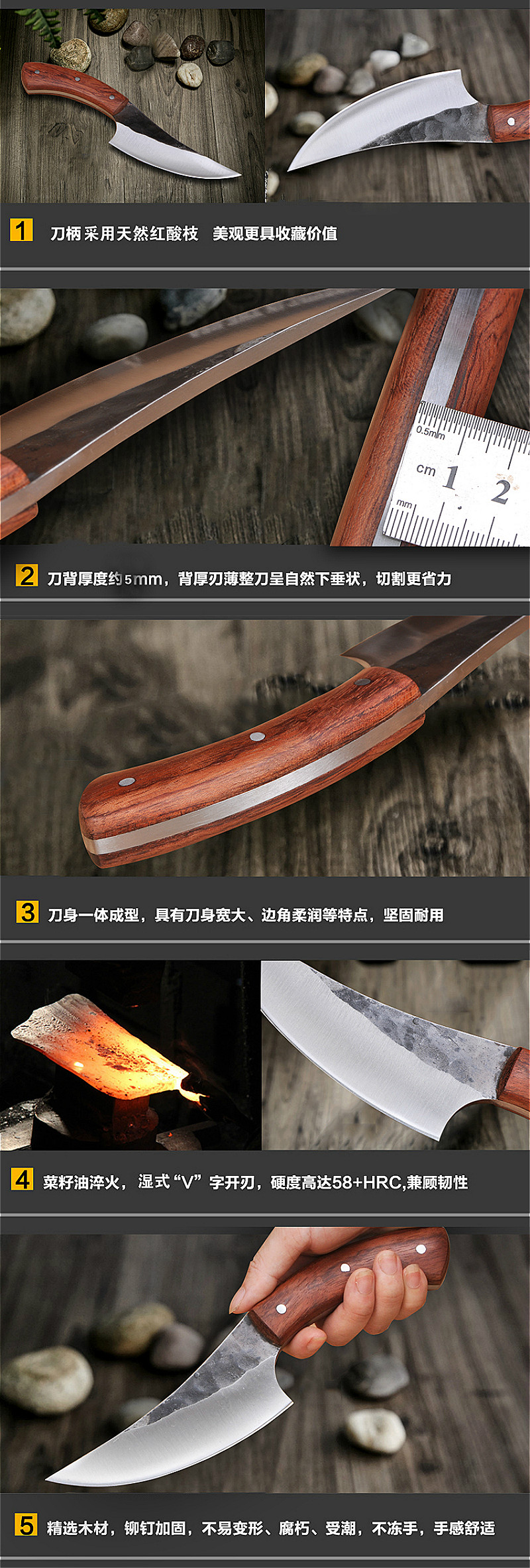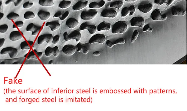 1.Плохой продавец использует некачественную стальную поверхность для прессования рисунка, имитирует ручной Высокоуглеродистый ковочный нож, не прошел никакой ковки, закалки, отпуска и другой технологической обработки, такие твердость и прочность ножа очень плохие. Кроме того, его легко взломать, что серьезно влияет на использование. Продавайте по низкой цене для получения прибыли. Я надеюсь, что друзья покупателя смогут покупать подлинные товары и не будут обманываться за то, что они дешевы.