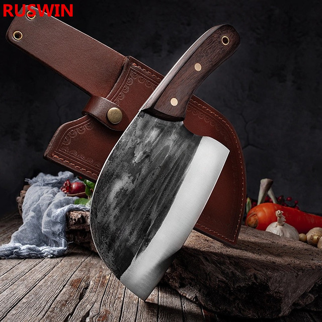 Кованый нож мясника, кухонные ножи ручной работы из высокоуглеродистой стали с фильтром, резак для нарезки мяса, Подарочный Чехол для ножа