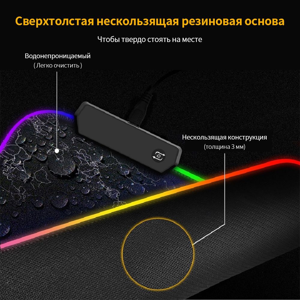 • СВЕТЯЩИЕСЯ МНОГОСВЕТОВЫЕ РЕЖИМЫ ПОДКЛЮЧАЙ И ИГРАЙЭтот игровой коврик для мыши с RGB-подсветкой имеет несколько режимов подсветки для светящихся светодиодов, меняющих цвет. 13 режимов освещения, включая 7 статических и 6 динамических режимов. Он имеет функцию памяти выключения, чтобы запомнить режим освещения, который вы выбрали ранее. нет необходимости многократно переключать режимы.