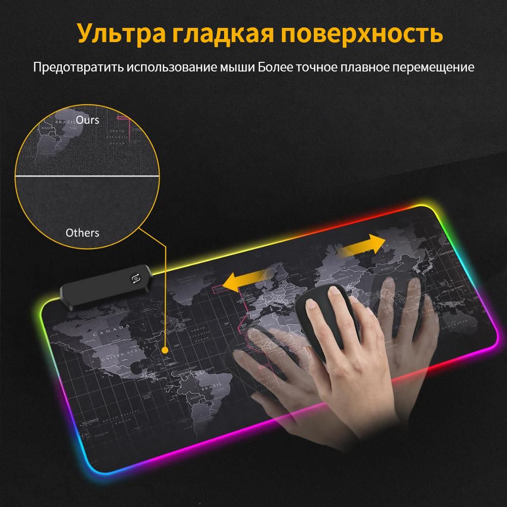 Коврик для мыши 900×400 Коврик для мыши игровой коврик для мышки с подсветкой большой коврик компьютерный ковер для клавиатуры и мыши rgb mouse pad, черный
