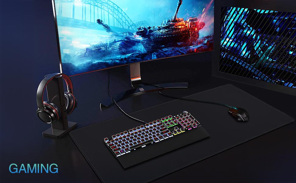 Профессионально Разработанный большой коврик для мыши, который может обеспечить достаточно места для размещения мыши, клавиатуры и других канцелярских принадлежностей. У вас будет достаточно места для игр в профессиональном стиле или бизнес-задач, при этом ваш рабочий стол всегда будет защищен.