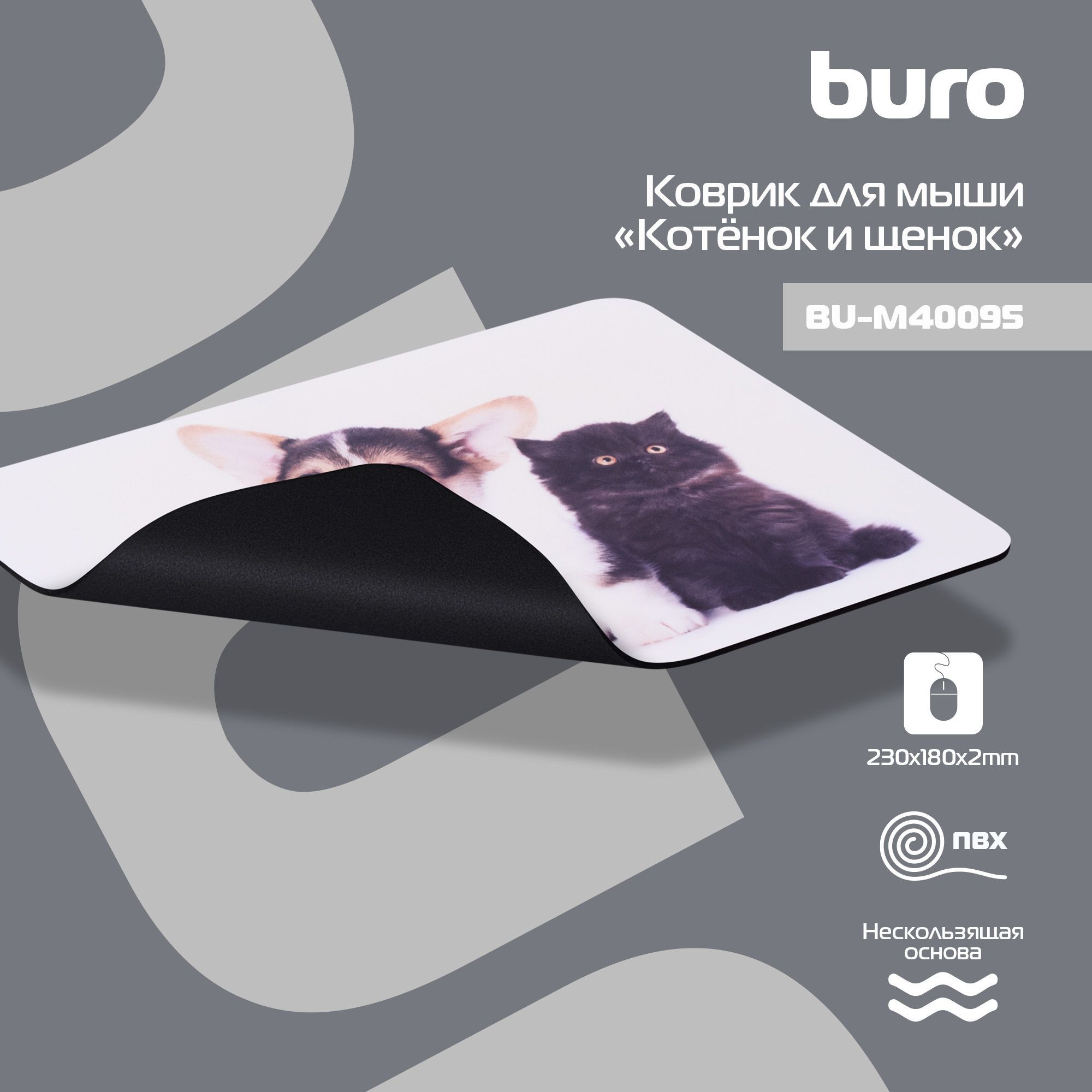 Коврик для мыши Buro BU-M40095 Мини рисунок/котенок и щенок 230x180x2мм