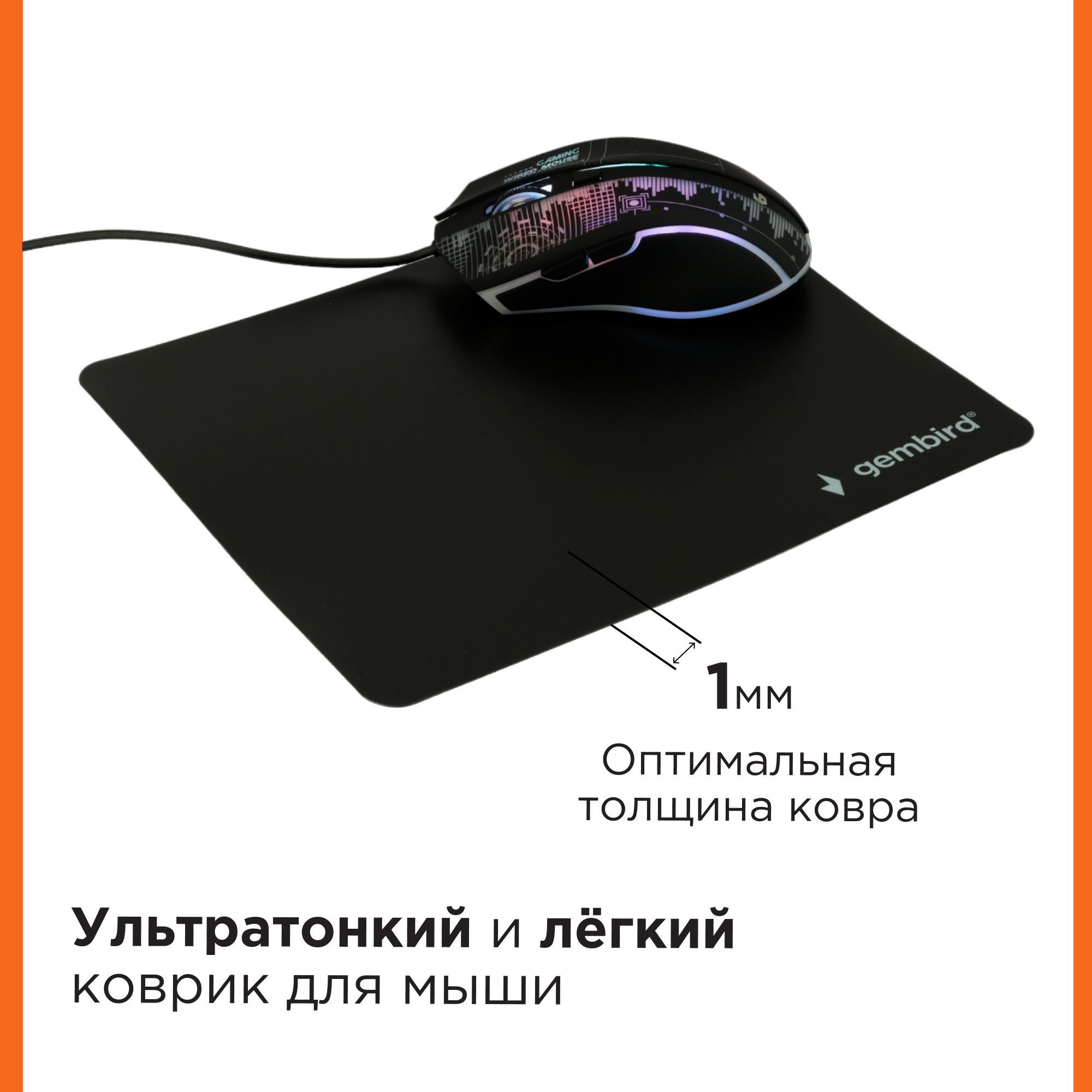 Коврик для мыши, чёрный, размеры 220*180*0,5мм, ультратонкий,100% пластик, Gembird MP-BASIC