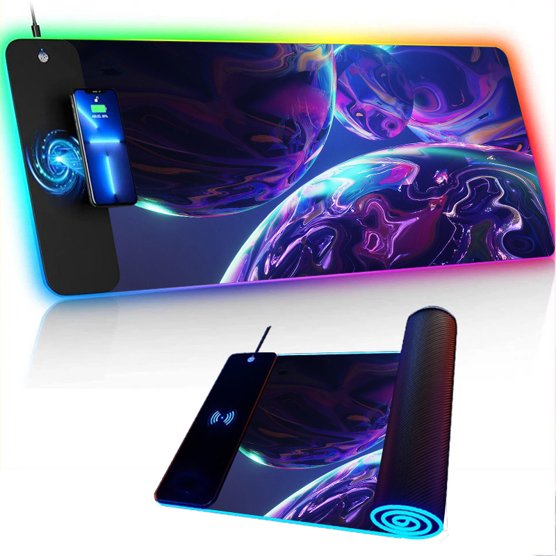 Коврик для мыши Cyberpunk с беспроводной зарядкой, игровой скоростной коврик для мыши с RGB подсветкой, украшение для игровой комнаты, Офисные аксессуары для стола Xxl