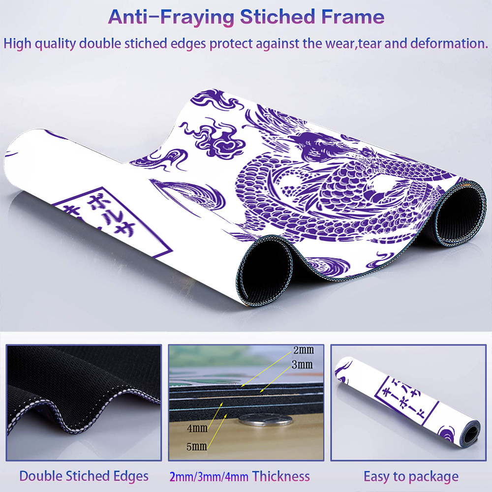 Коврик для мыши Dragon, фиолетовый и белый, Настольный коврик, японский игровой коврик, коврик для ноутбука, геймерский, аниме, Офисная игровая клавиатура, резиновый коврик для настольного компьютера