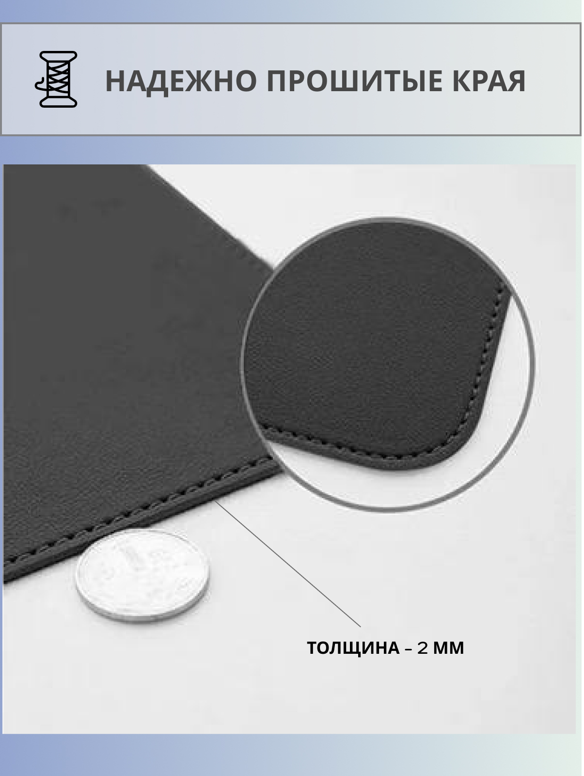 Описание: Большой коврик для компьютерной мыши размером 800х300х2мм. Коврик изготовлен из качественной эко-кожи. Легко очищается, не впитывает воду и грязь. Края обработаны строчкой. В комплекте есть маленький ремешок, поэтому коврик очень удобно носить с собой. Данный коврик отлично впишется в любой интерьер и поможет вам сделать рабочее место более практичным и удобным.