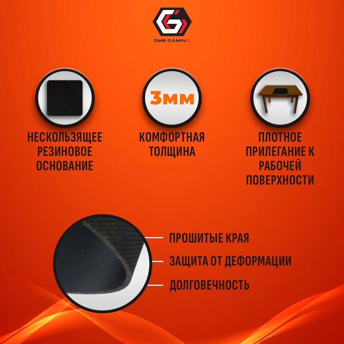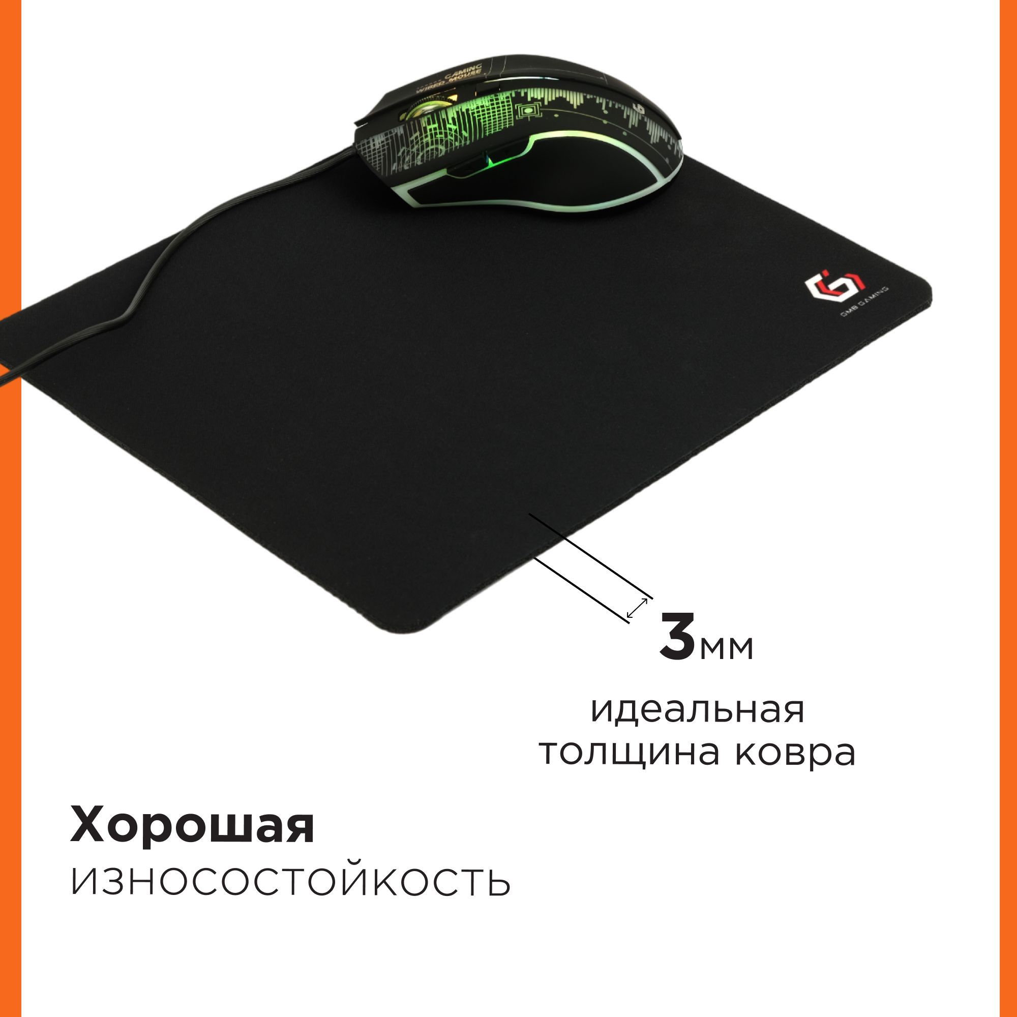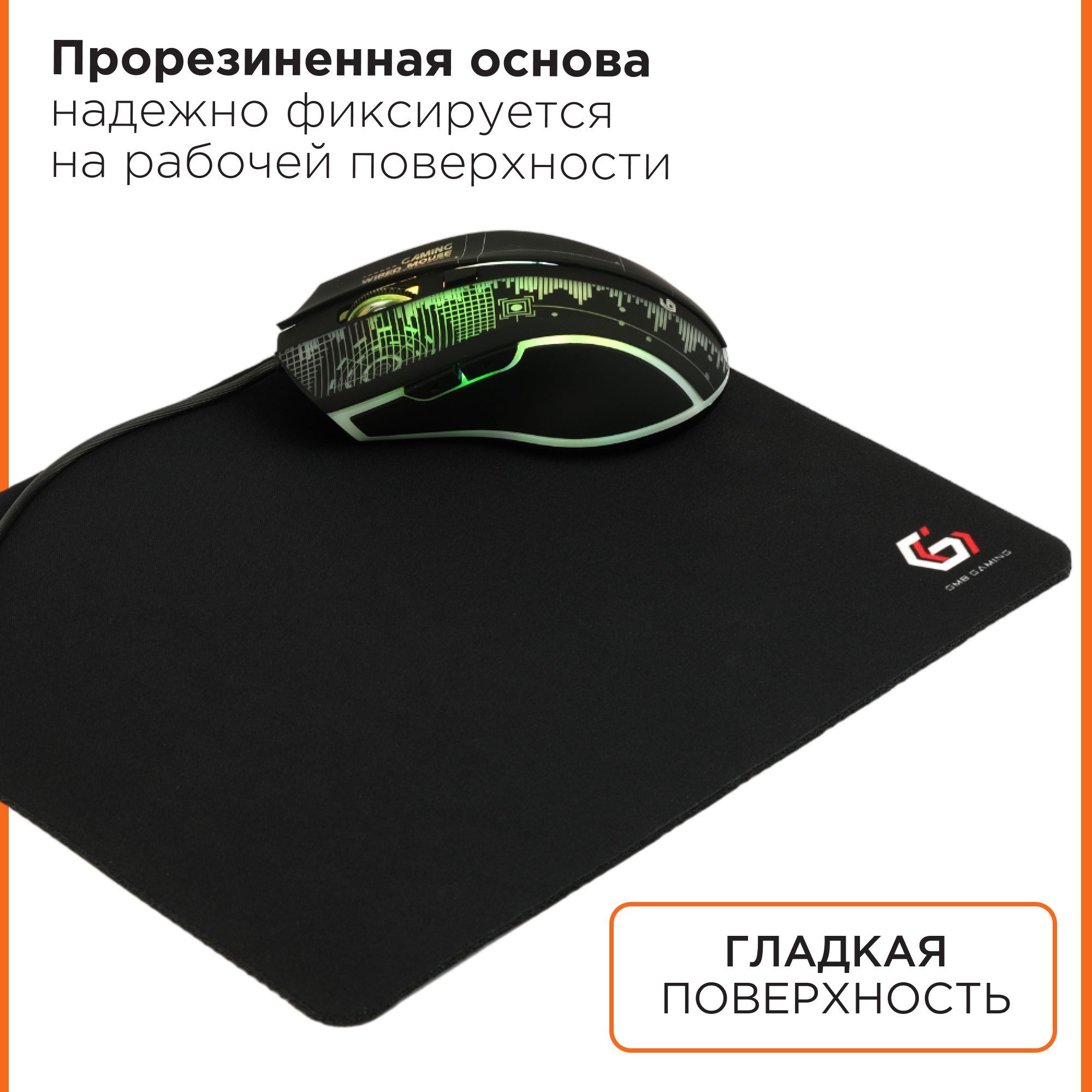• Износоустойчивая тканевая рабочая поверхность обеспечивает полный контроль над движениями мыши