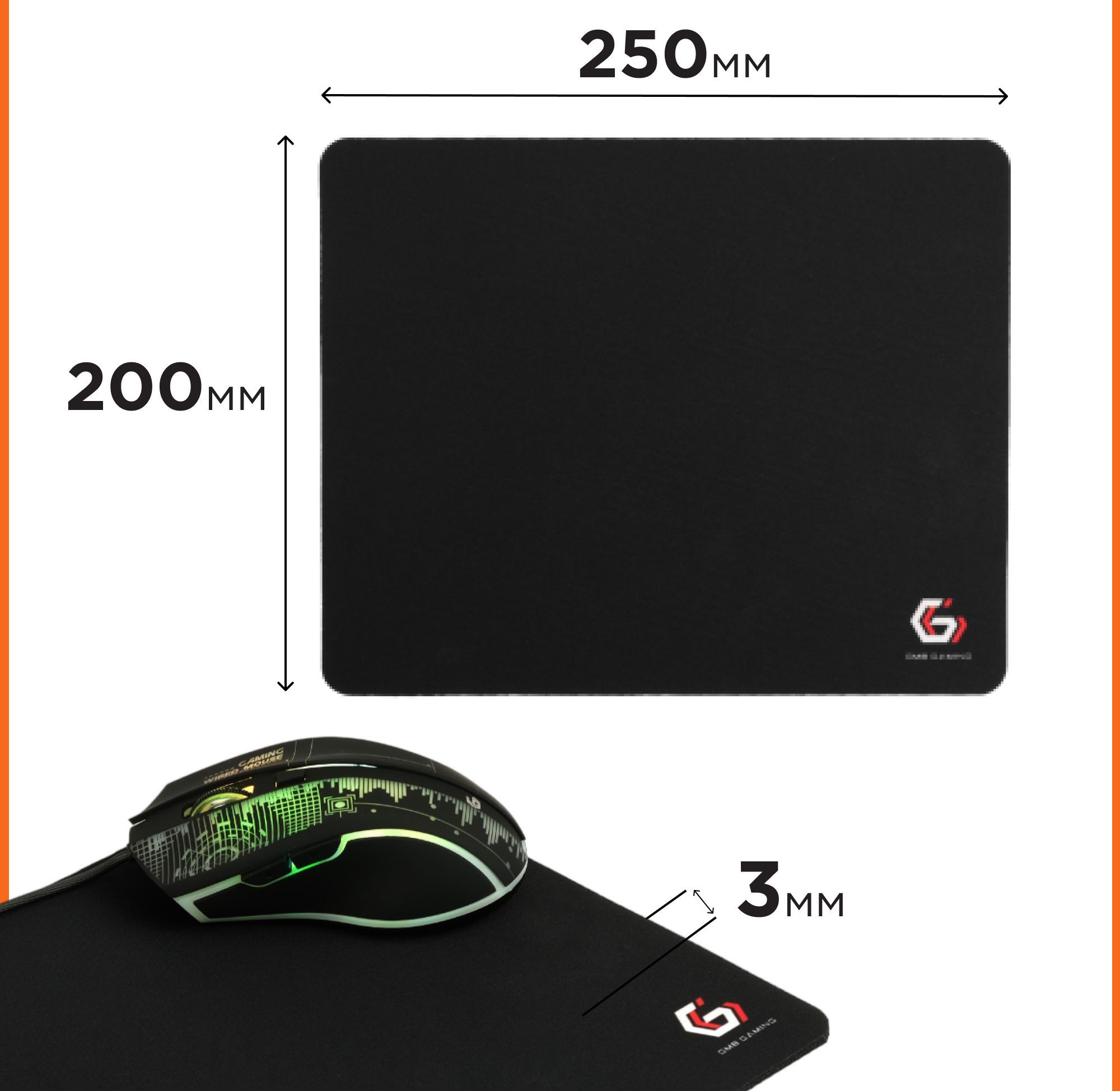 Коврик для мыши Gembird, черный, размеры 250*200*3мм, ткань+резина