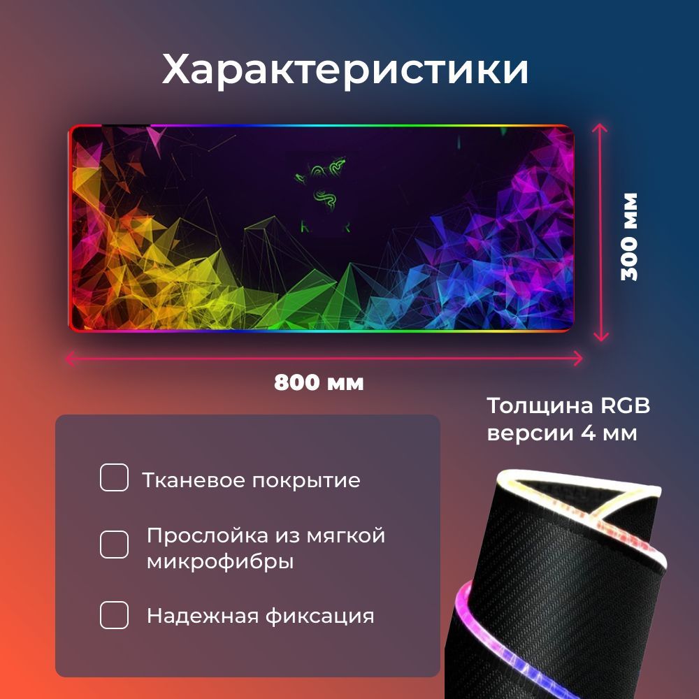Коврик для мыши игровой RAZER с RGB подсветкой (300х800х4 мм.)