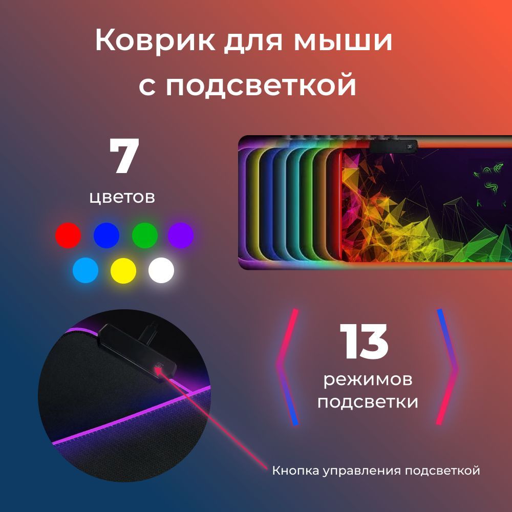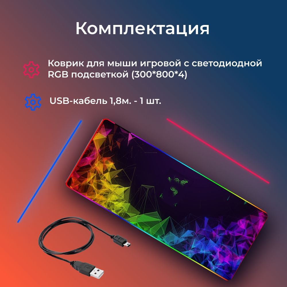 Коврик для мыши игровой со светодиодной RGB подсветкой (300*800*4) USB-кабель 1,8м. - 1ш