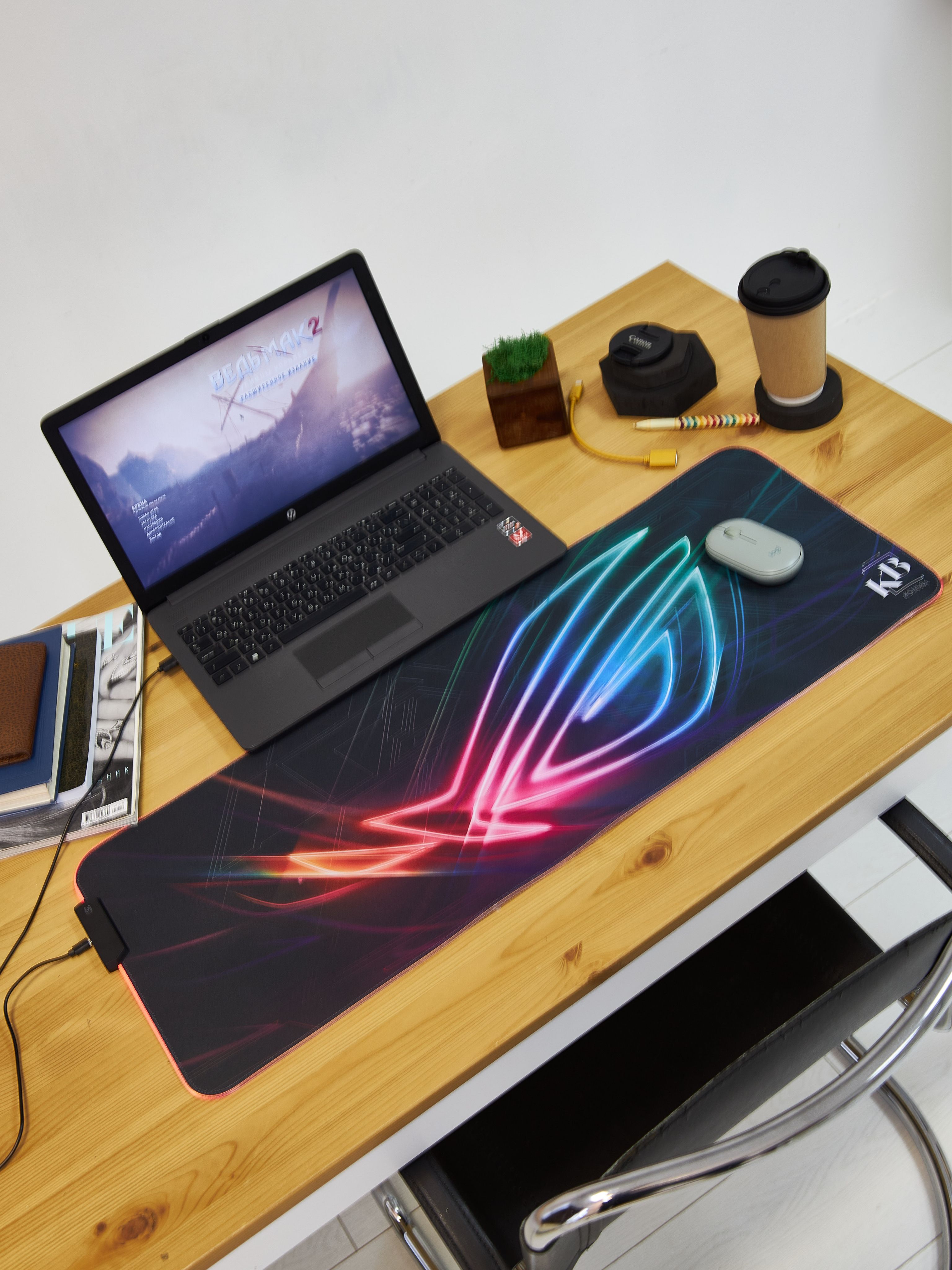 Сейчас почти не встретить игрока без коврика для мыши. Это недорогой игровой аксессуар относительно других девайсов и будет прекрасным сочетанием коврика для стола. Правильный выбор такого аксессуара существенно влияет на восприятие геймплея в положительную сторону. Когда говорят об апгрейде игрового компьютера, то в первую очередь имеют в виду приобретение процессора, оперативки и т.д., покупка и выбор коврика для компьютерного стола также имеет важную роль. Следует обратить внимание, что такой с виду примитивный и незаметный аксессуар, как коврик для мыши и мышка для компьютера могут значительно влиять на игровые результаты, ведь от правильности его подбора зависит точность движений мышки, комфорт геймера, его настроение и иногда даже здоровье. Коврик для мышки большой и мышка для ноутбука украсят коврик для компьютерного стола. В основании коврика для мыши традиционно находится резиновый слой, который предотвращает скольжение по различным видам поверхностей. Особенность данной модели заключается во встроенной подсветке. Она пригодится в темное время суток при работе за компьютером или ноутбуком.