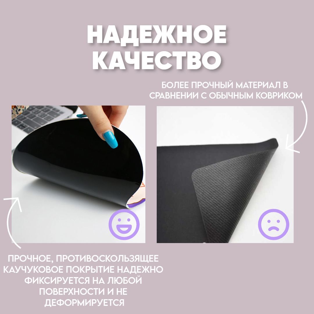 5. Противоскользящая конструкция: для обеспечения устойчивости у коврика есть противоскользящая подложка, которая эффективно фиксирует его на рабочем столе и предотвращает скольжение и перемещение коврика по столу. Таким образом, вы можете полностью сосредоточиться на работе с мышью, не беспокоясь о том, что коврик будет сдвинут с места.