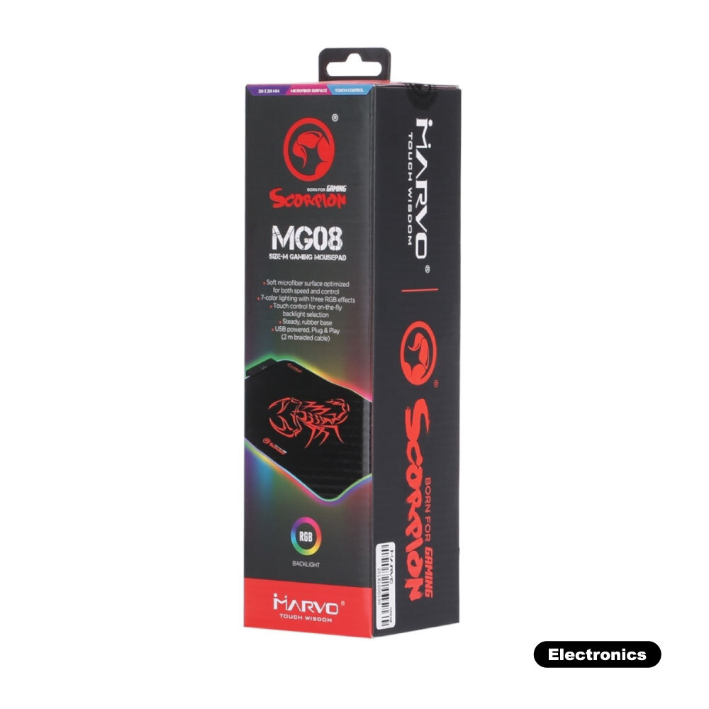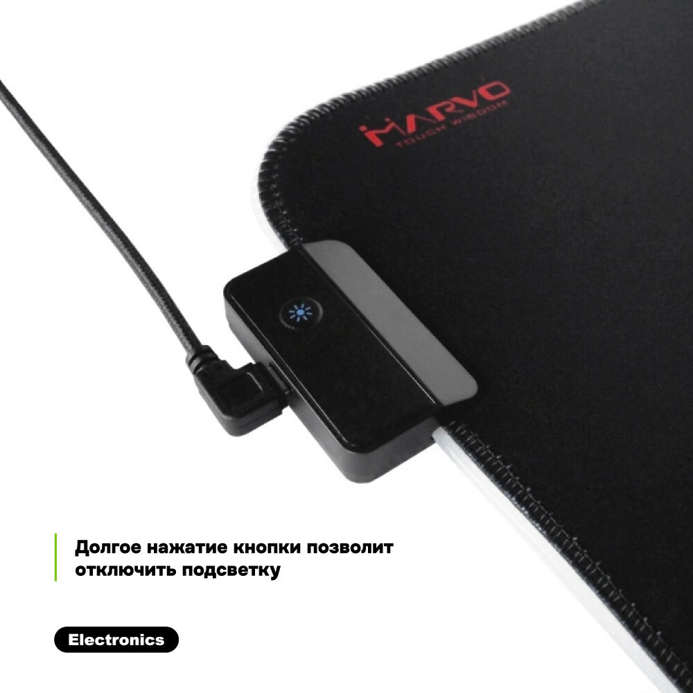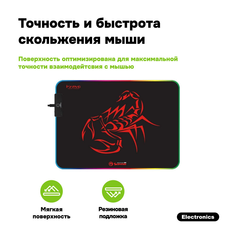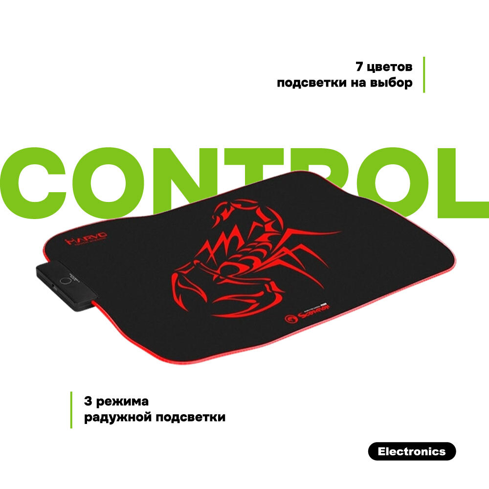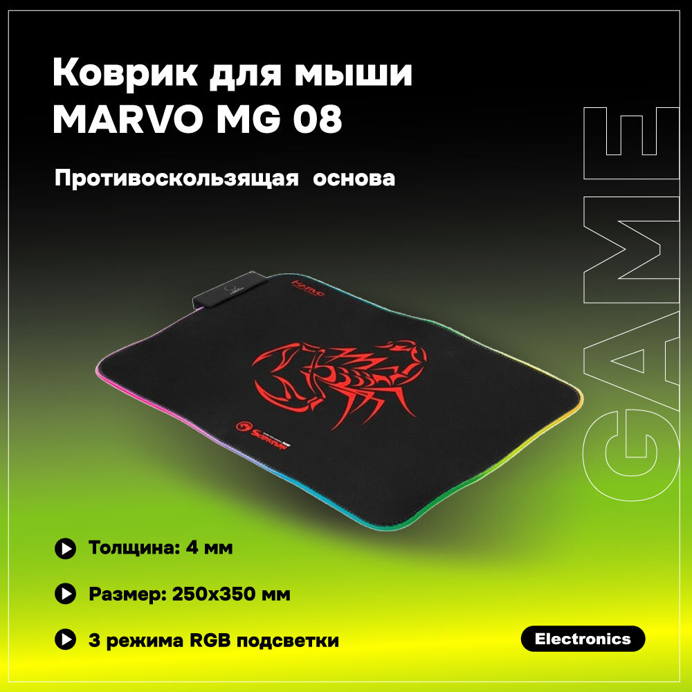 Коврик для мыши MARVO MG08, 350x250x3 мм, RGB подсветка, для кибер-спорта, компьютерный, противоскользящая основа, подарочная коробка