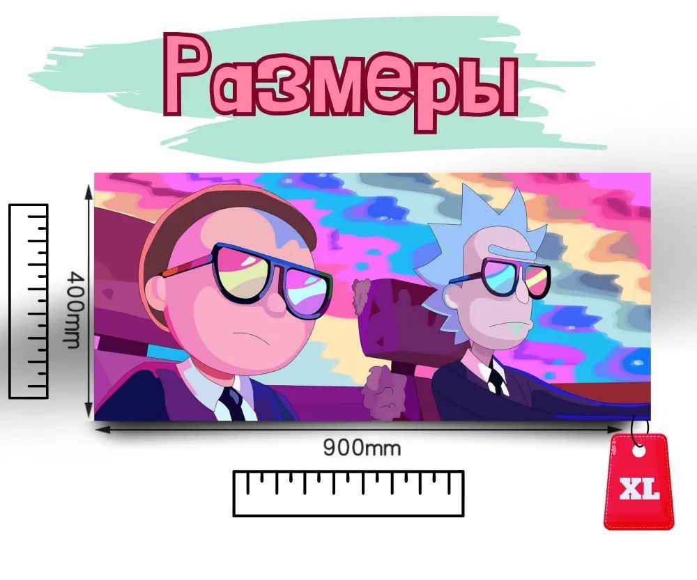 Коврик для мыши OEM Большой коврик Рик и Морти, XXL, розовый