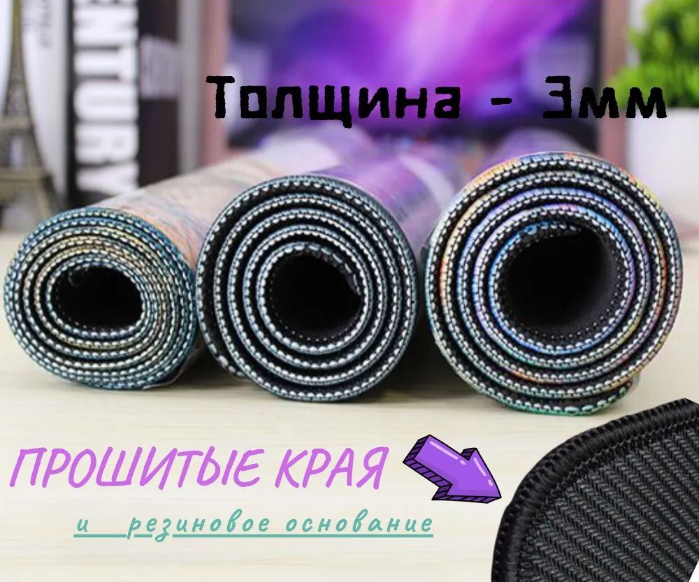 Описание:                 Крутой дизайнВаши любимые герои всегда будут радовать вас на вашем рабочем столе.  Оптимальная толщина коврика!Ваша мышка полностью раскроется на гладком покрытии ковра с оптимальной толщиной в 3мм.Больше коврик - Больше удобств!XL размер ковра даст вам максимально большое рабочее пространство и не будет сковывать ваши движения в самых важных моментах!