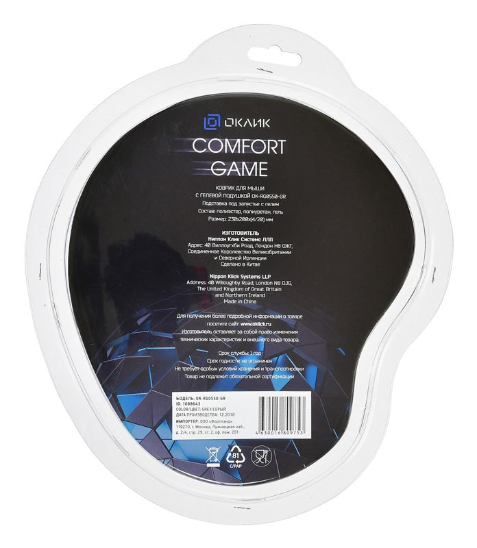 Коврик для мыши Oklick OK-RG0550-GR