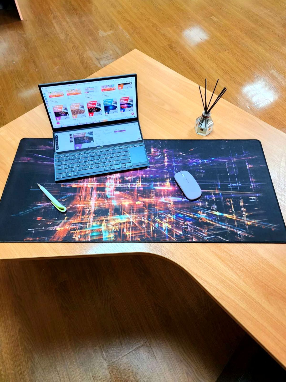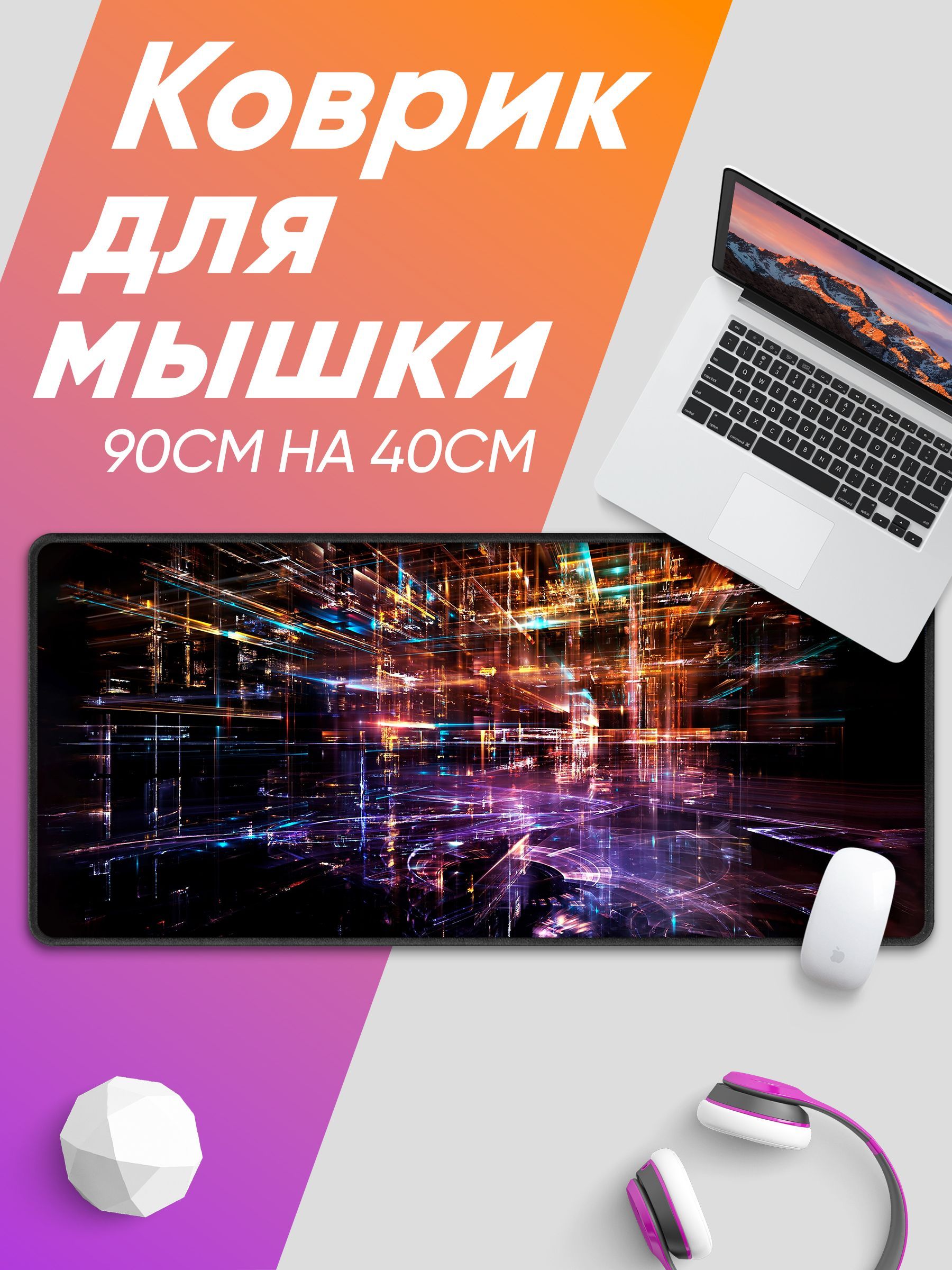 Описание: Игровой коврик для мышки с ярким принтомБольшой коврик целиком покроет рабочее пространство и сделает игру и работу максимально комфортнойБольшой и стильныйКоврик для мыши большого размера 90х40 см с интересным дизайном обеспечит победы в компьютерных играх геймеру и за работой в офисе. Широкий размер аксессуара позволяет покрыть весь стол и расположить на нем мышь и клавиатуру или ноутбук. Яркий рисунок понравится многим и прекрасно впишется в современный интерьерНескользящий низБлагодаря прорезиненной основе данный коврик отлично фиксируется на столе, не скользит и не пропускает влагу, а самое главное служит хорошей защитой поверхности стола ЯркийНовейшая технология печати отличается высокой яркостью и четкостью принта, коврик будет радовать своим внешним видом долгие годы и украсит даже самый обычный столПрошитые краяУ наших ковриков очень качественная прошивка краев. Оверлок мягкой, но прочной синтетической нитью не только помогает сохранить внешний вид коврика, но и добавляет комфорта в использовании.Speed/ControlНаши коврики имеют гладкое покрытие со средними характеристиками, это значит, что они подойдут как для щепетильной работы в графических редакторах, где важна точность, так и для быстрых шутеров, где нужен максимально быстрый отклик и скольжение мыши.